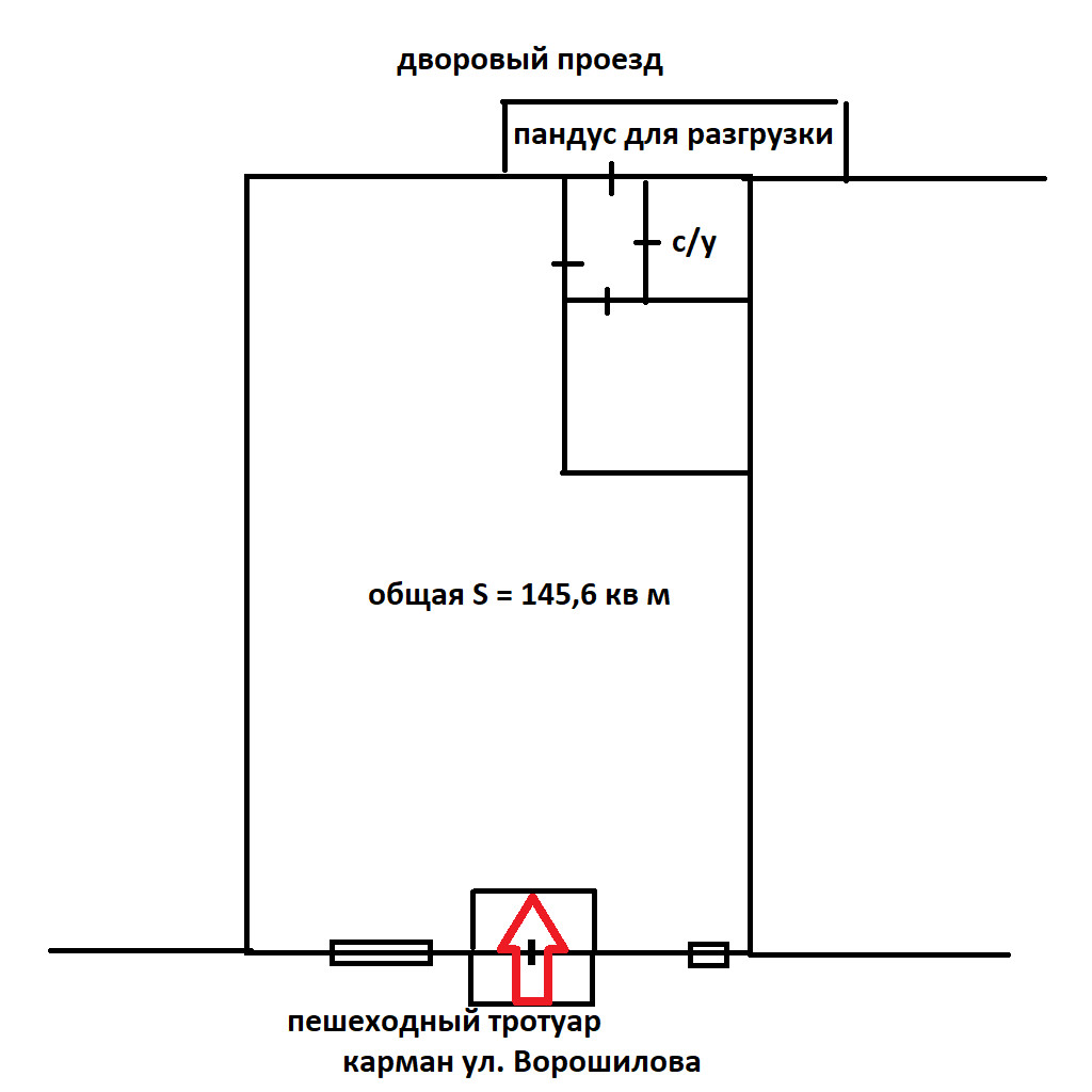Продается помещение общей площадью 145,6 кв.м. на первой линии торговых рядов пешеходного тротуара и автомобильного проезда. Помещение светлое, теплое, свежий ремонт, с окном, своим санузлом, небольшим отдельным кабинетом/складом (см. схему), втором выходом на дворовый проезд с удобным пандусом для разгрузки/погрузки, сигнализация.