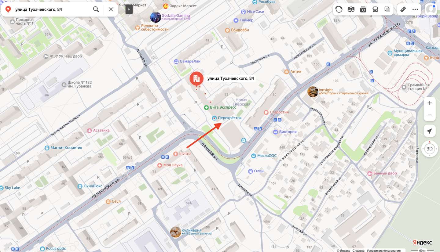 | Адрес | Самара, Железнодорожный, Тухачевского улица,84 |