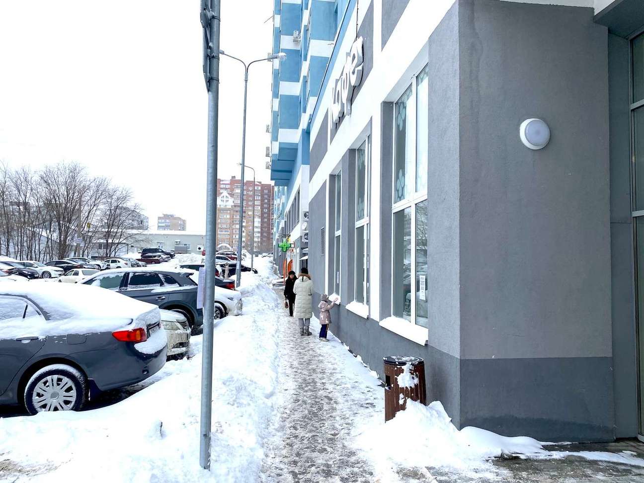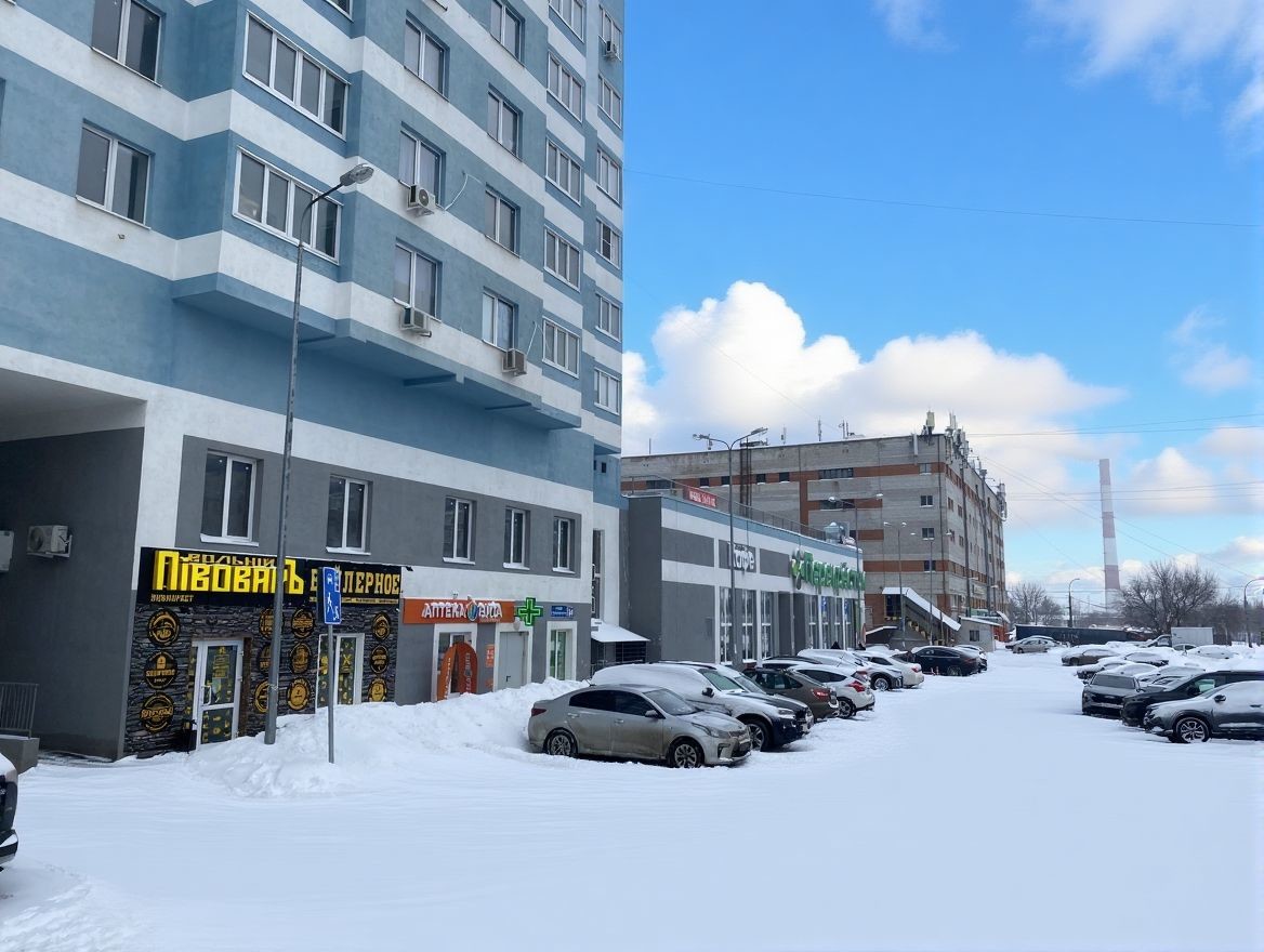 Интенсивный пешеходный и автомобильный трафик. Парковка для автомобилей, остановка общественного транспорта в шаговой доступности.
