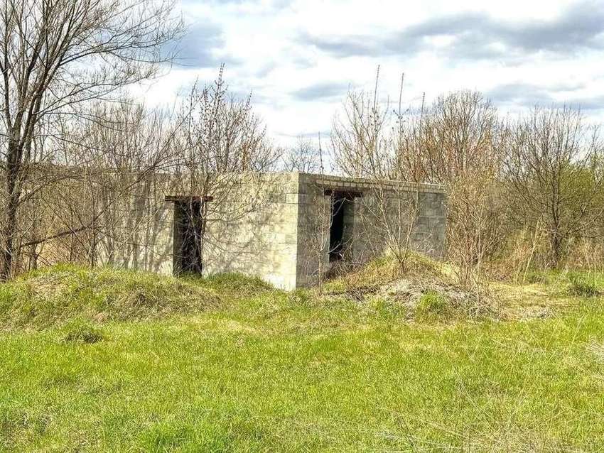• Строение: На участке имеется строение из газоблоков с крышей, покрытой плитами, которое можно использовать как временное жилье или для хранения.