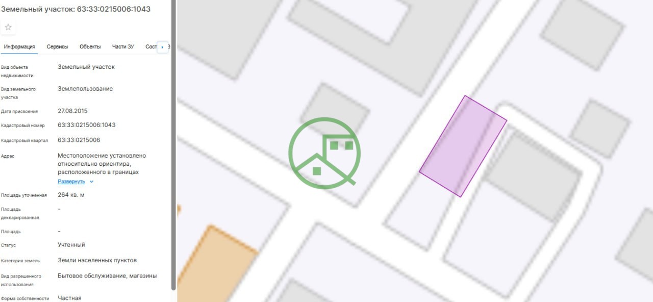 Земельный участок в центре Сызранский район, п. Варламово, ул. Кооперативная, позиция 7, под строительство нежилого помещения, рядом магазины "Пятерочка", "Красное белое".