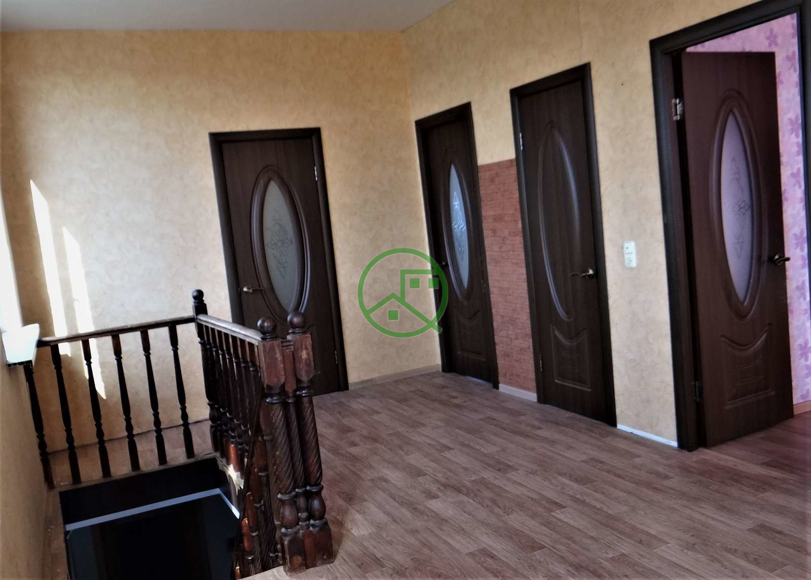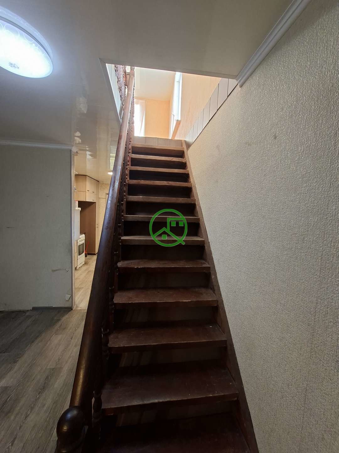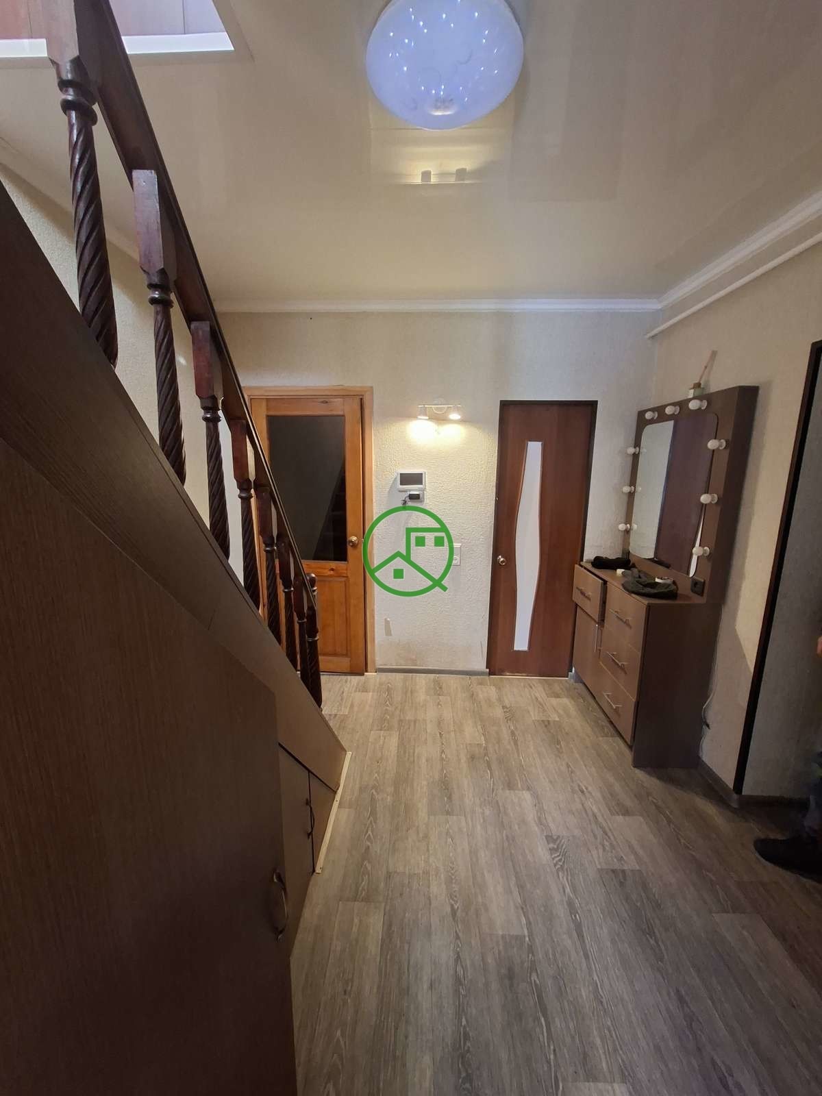 Дом двухэтажный с общей площадью 140 квадратных метров. В доме проведён газ,вода,канализация.На первом этаже располагается гостиная,спальня,туалет, кухня, деревянная лестница на второй этаж. Из кухни также есть выход на летнюю кухню,баню. На втором этаже располагается три изолированные комнаты, кладовка.Во всем доме пластиковые окна, натяжные потолки, новые двери в комнаты.
