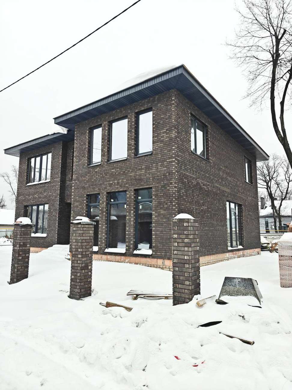 Коттедж строится в не большом коттеджном поселке на 6 домов.