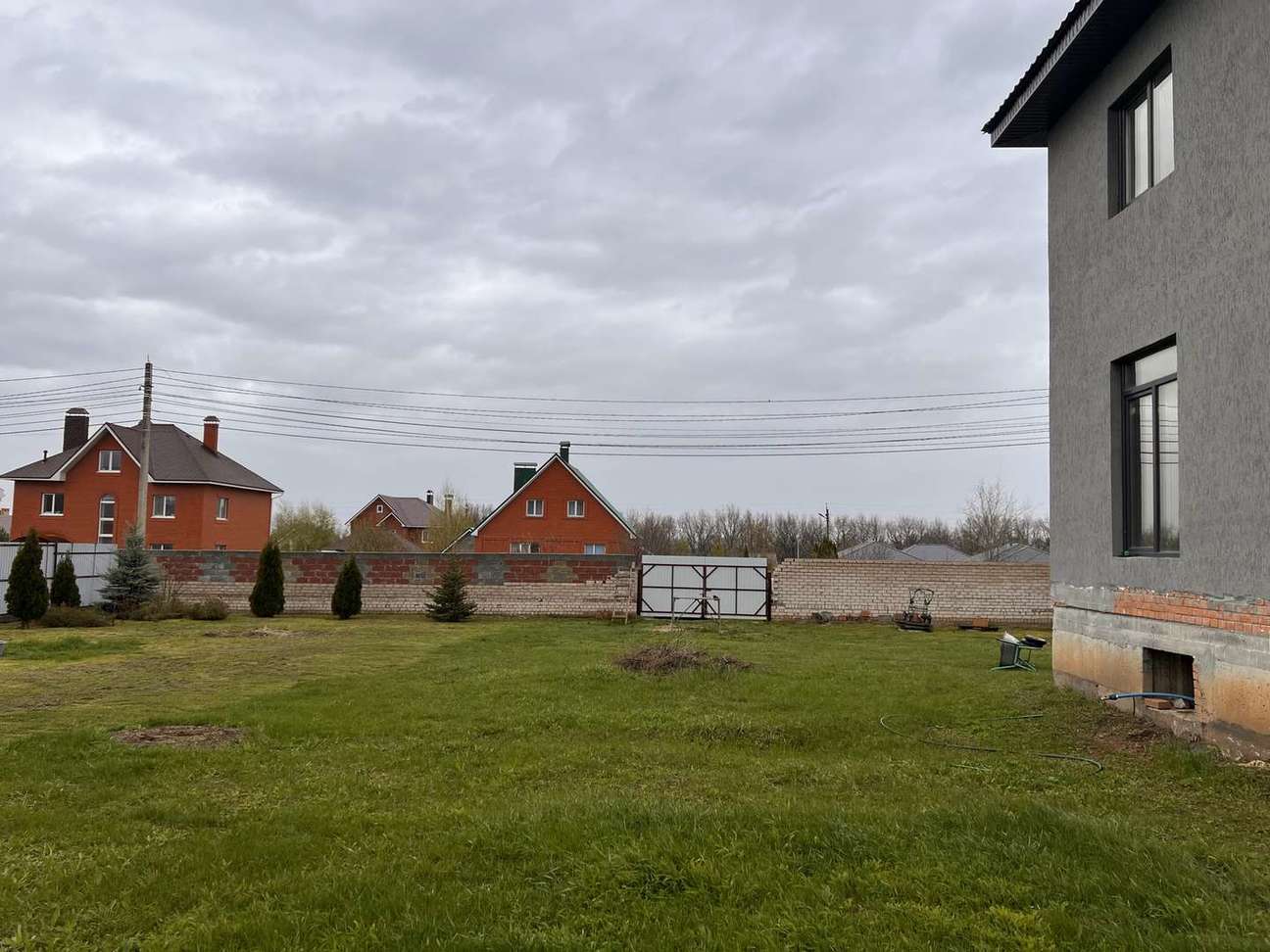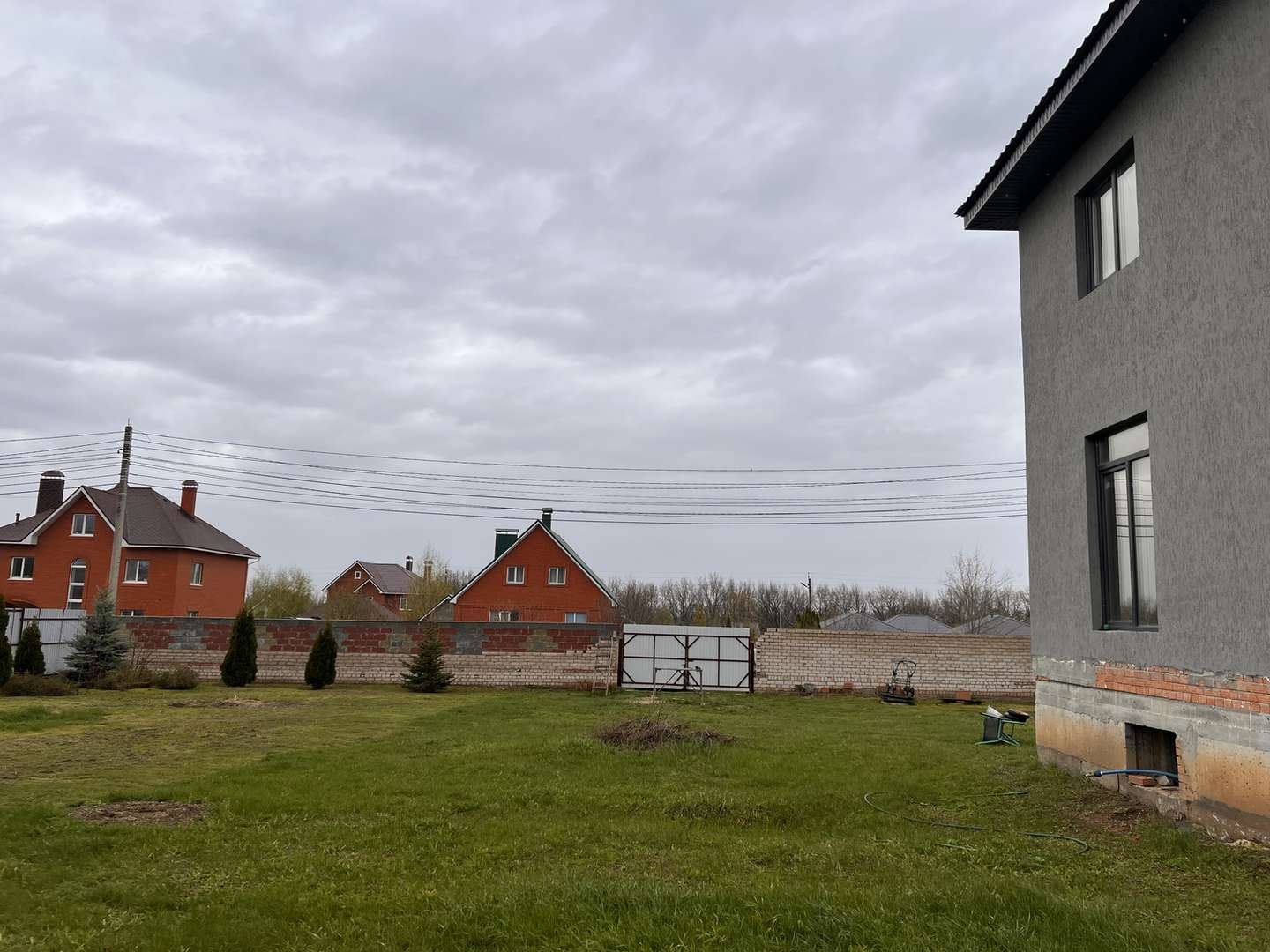 Участок огорожен каменным забором. На территории есть сооружение под гараж и тех помещение.