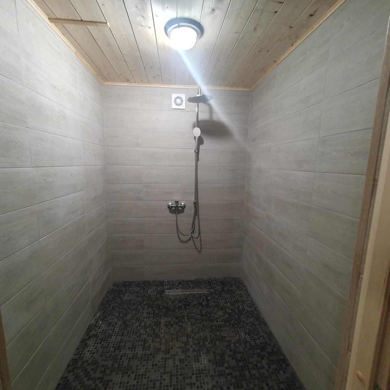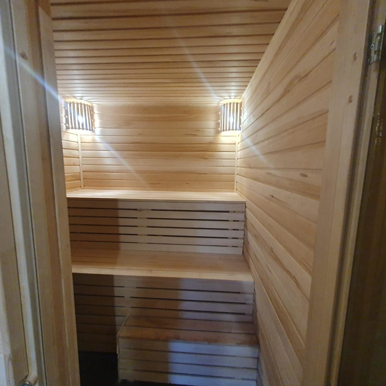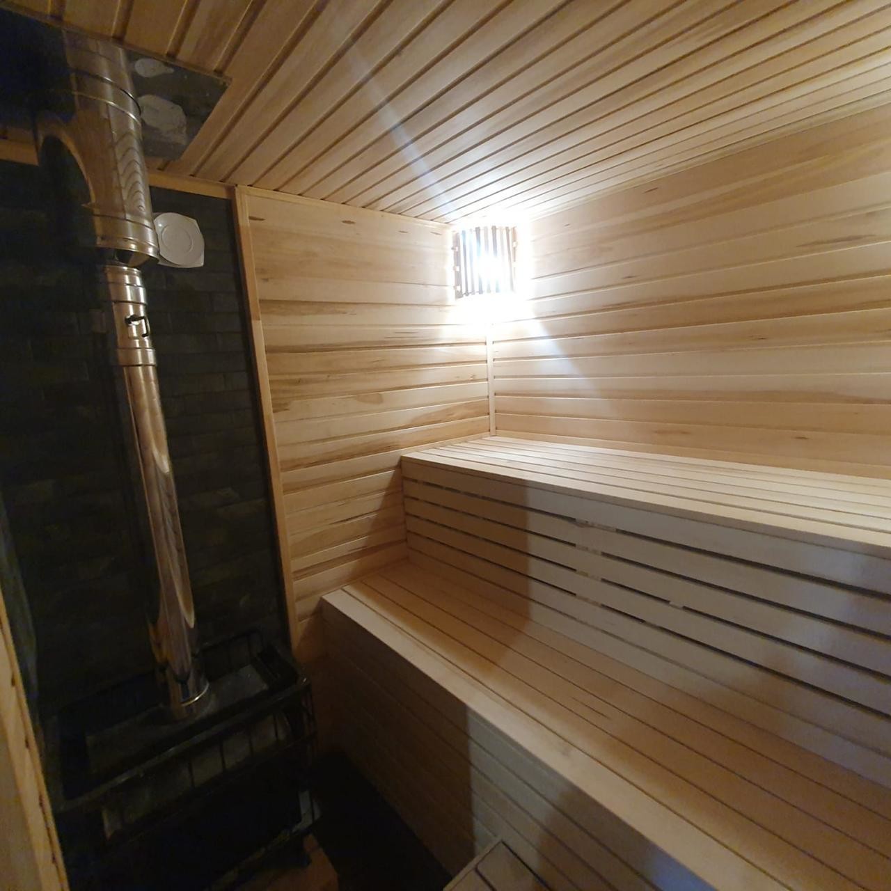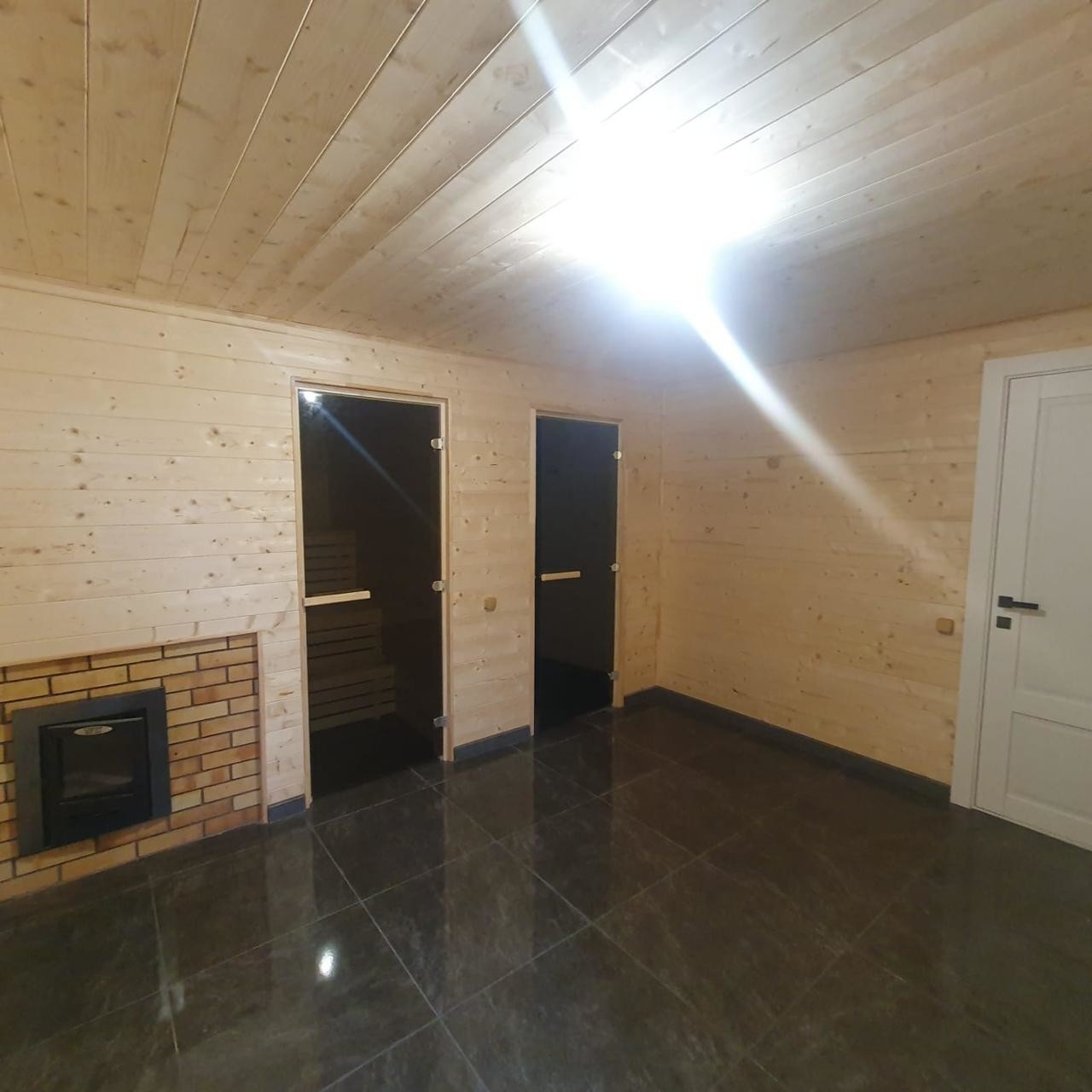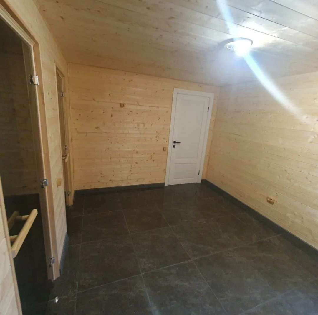 В доме кухня-гостиная и 3 комнаты, 2 санузла, гардеробная, баня-сауна.