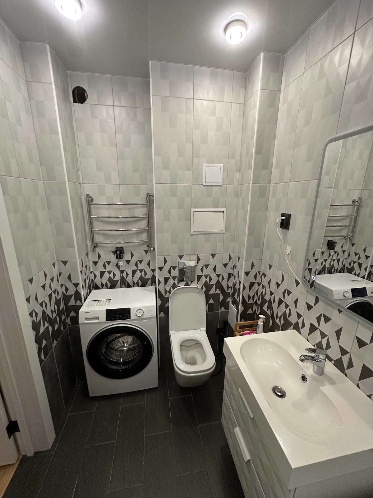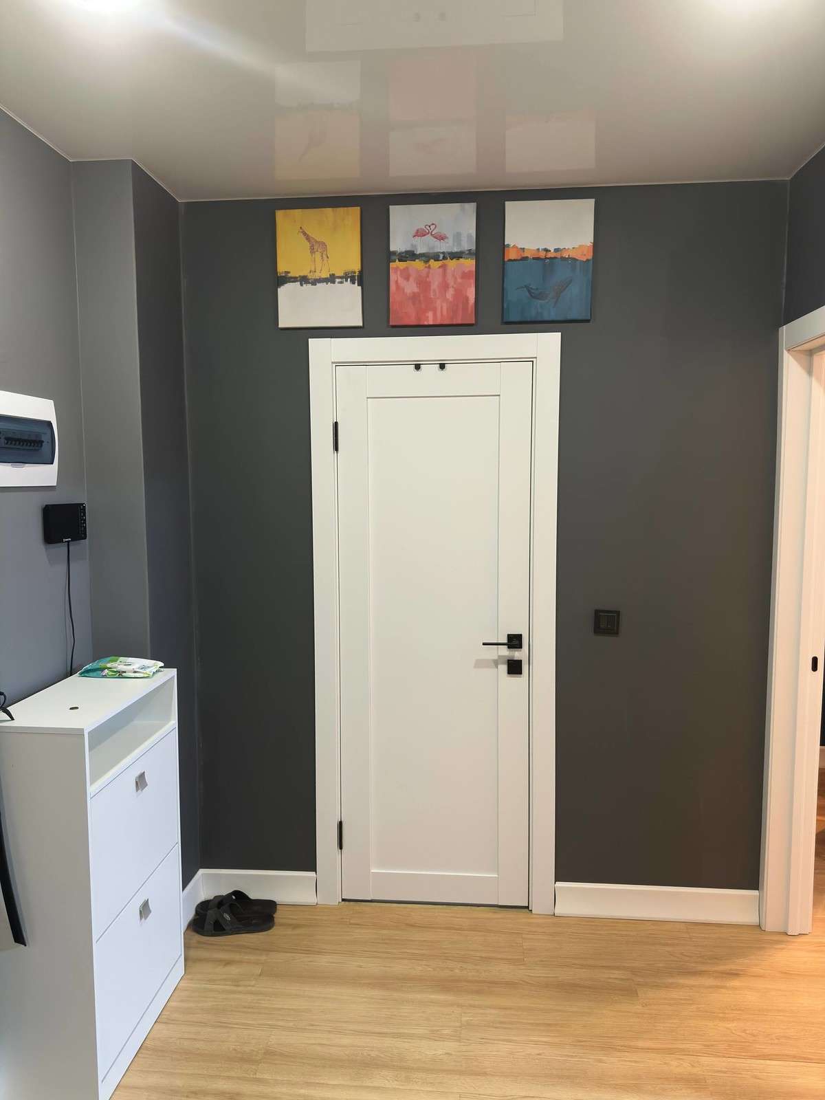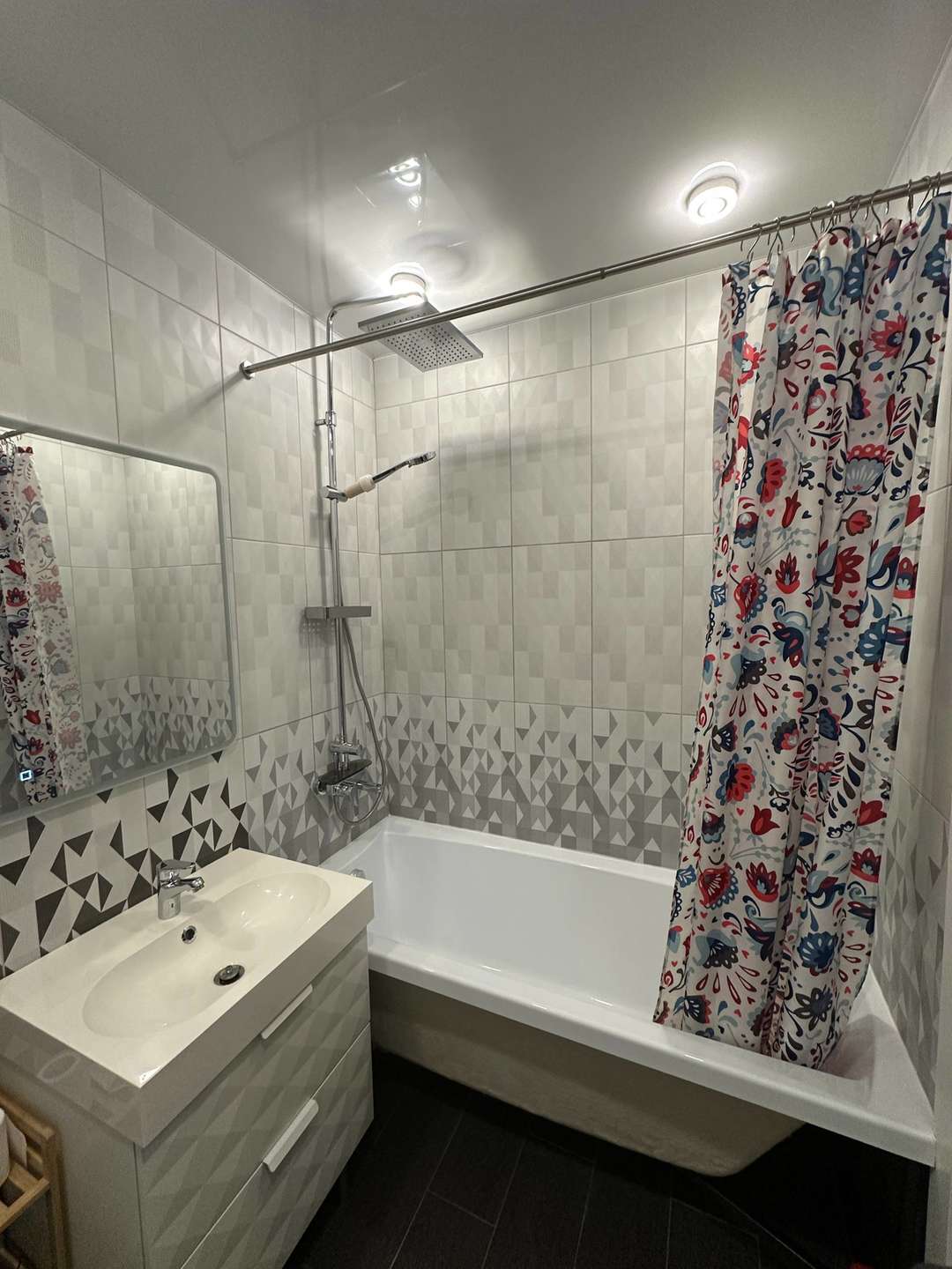B квартире плаcтиковые окна, натяжные потолки со встроенными светильниками, на полу кварц винил, на стенах обои под покраску, окрашены качественной краской фирмы "Тиккурила" можно смело мыть, санузел полностью отделан плиткой. Качественная мебель и техника, на кухне кондиционер. Вся мебель и техника: встроенная кухня, холодильник , духовой шкаф, электрическая плита, посудомойка, стиральная машина, диван встроенные шкафы, электрический камин в спальне, все остается. Квартира не требует вложения, ремонт в отличном состоянии.