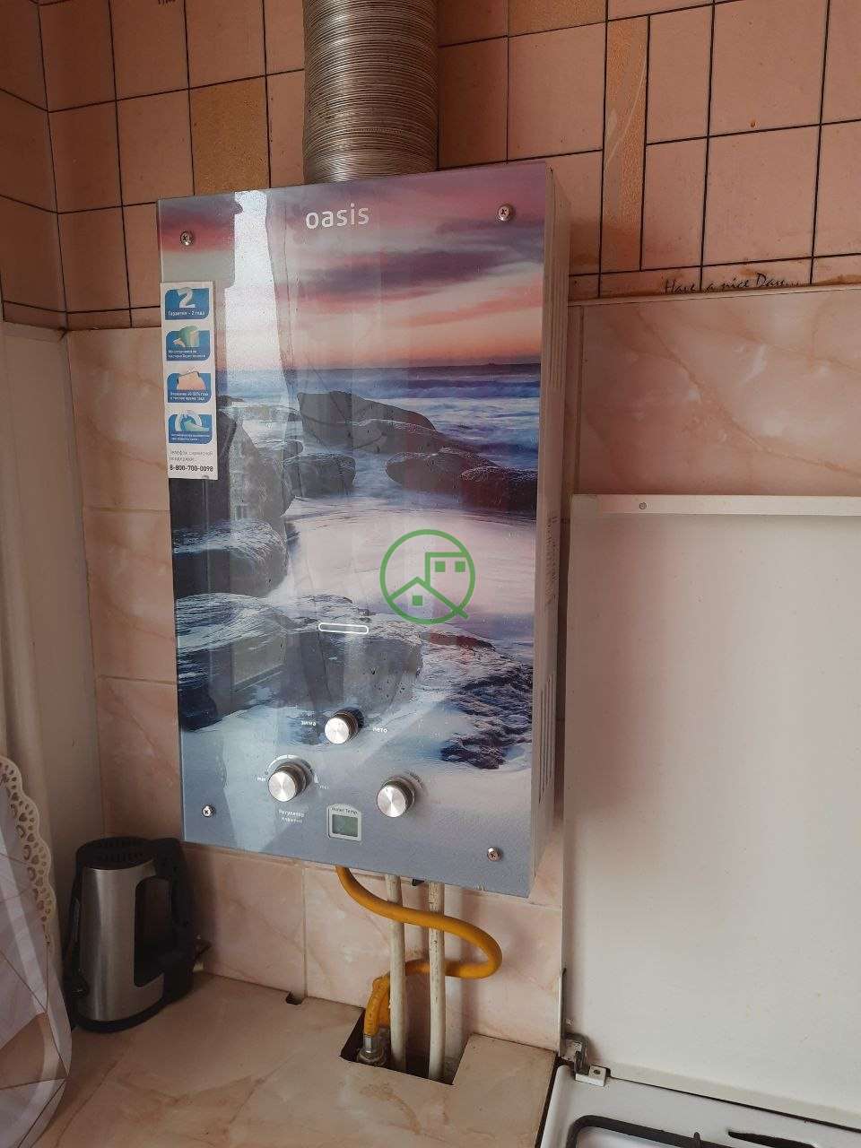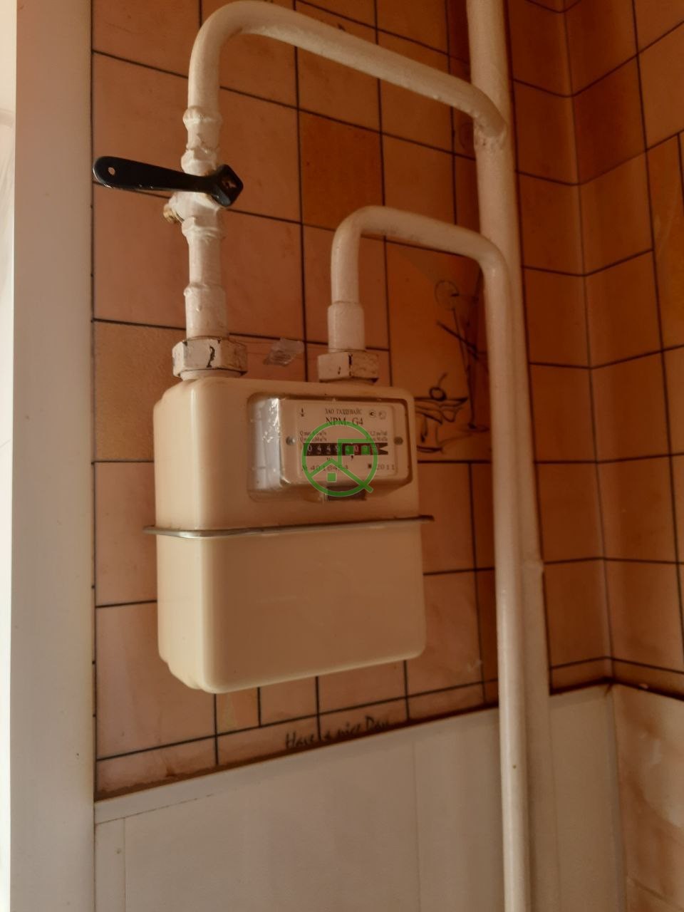 На кухне новая газовая колонка - всегда есть горячая вода. Счетчики на газ и воду.