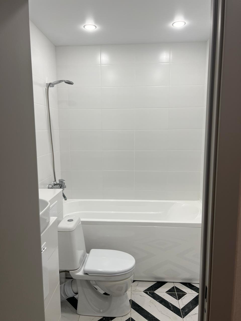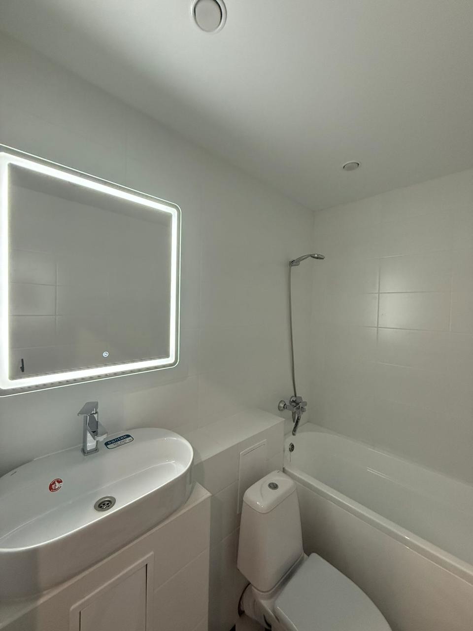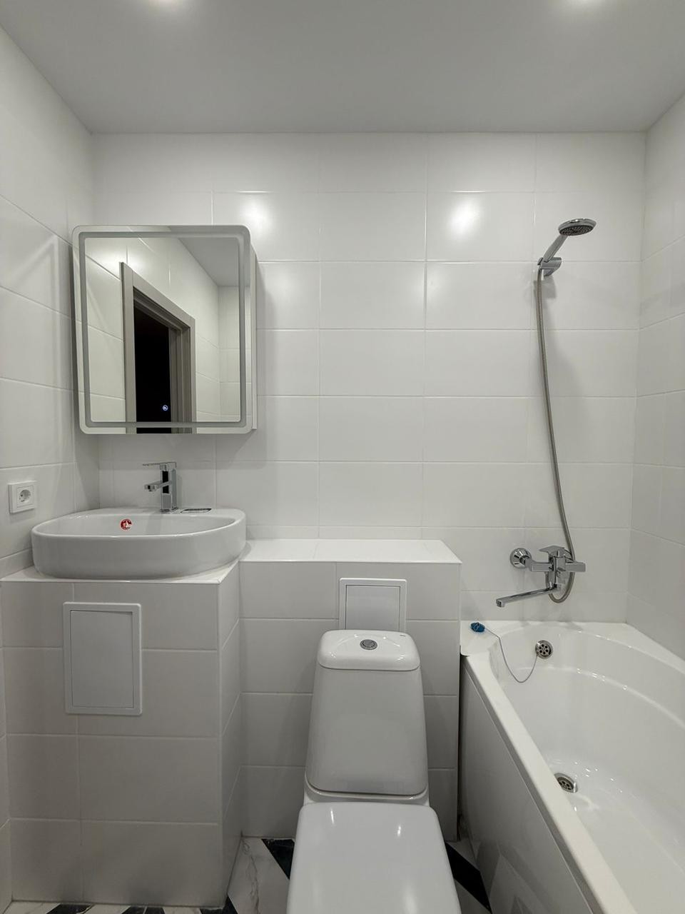 Санузел совмещённый, что является удобным решением для экономии пространства.