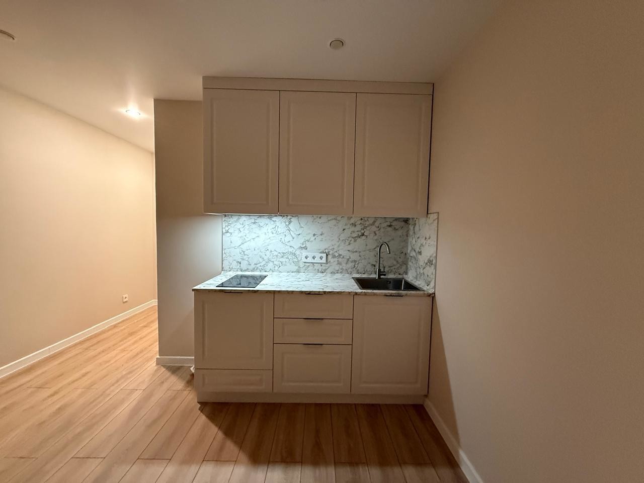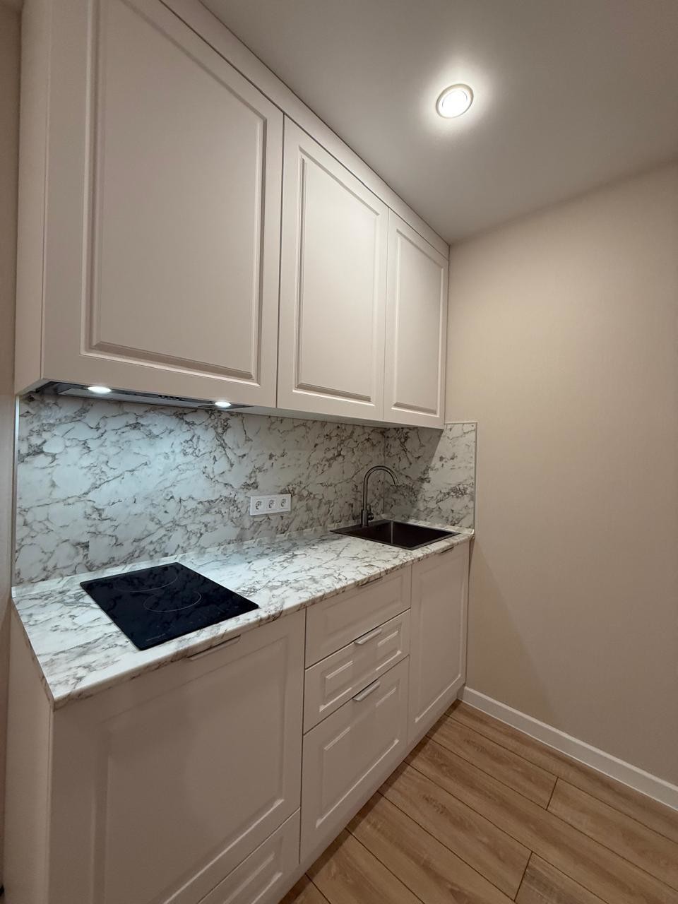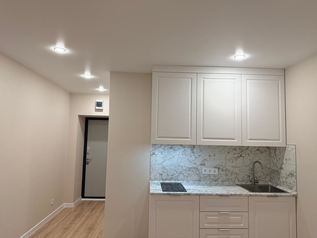 Санузел совмещённый, что является удобным решением для экономии пространства.