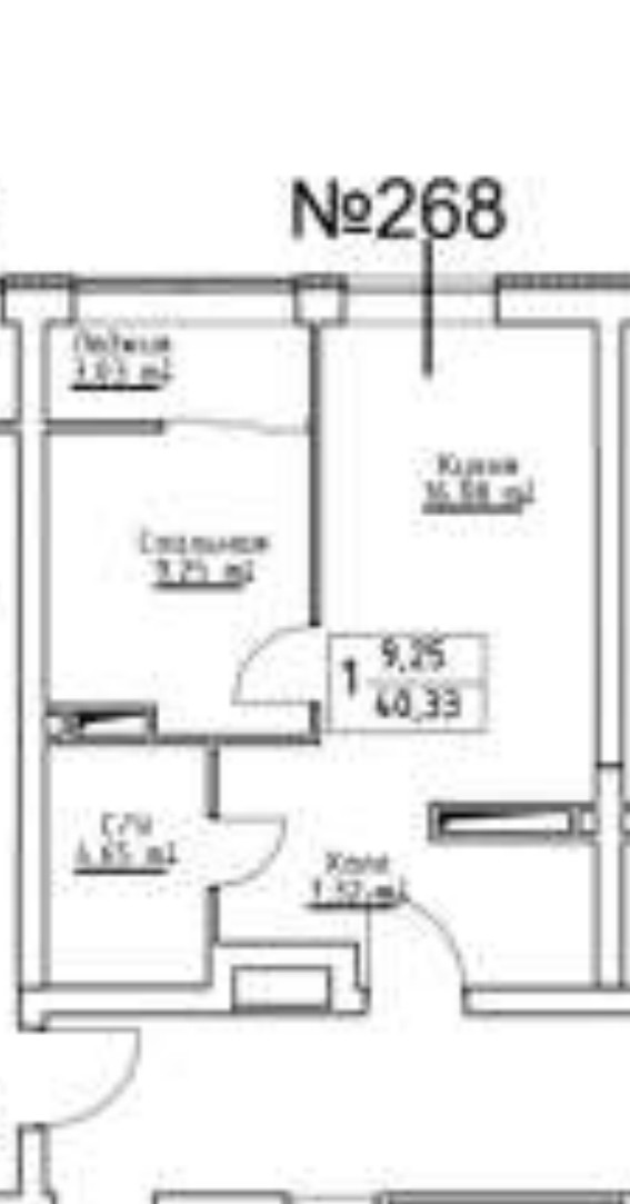 Общая площадь 40,3 кв.м. + лоджия 3 кв.м. Кухня-гостиная 16,1 кв.м., комната 9,3 кв.м. С выходом на лоджию. Окна выходят
