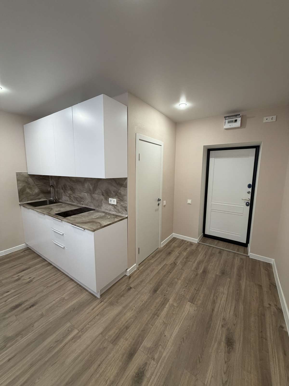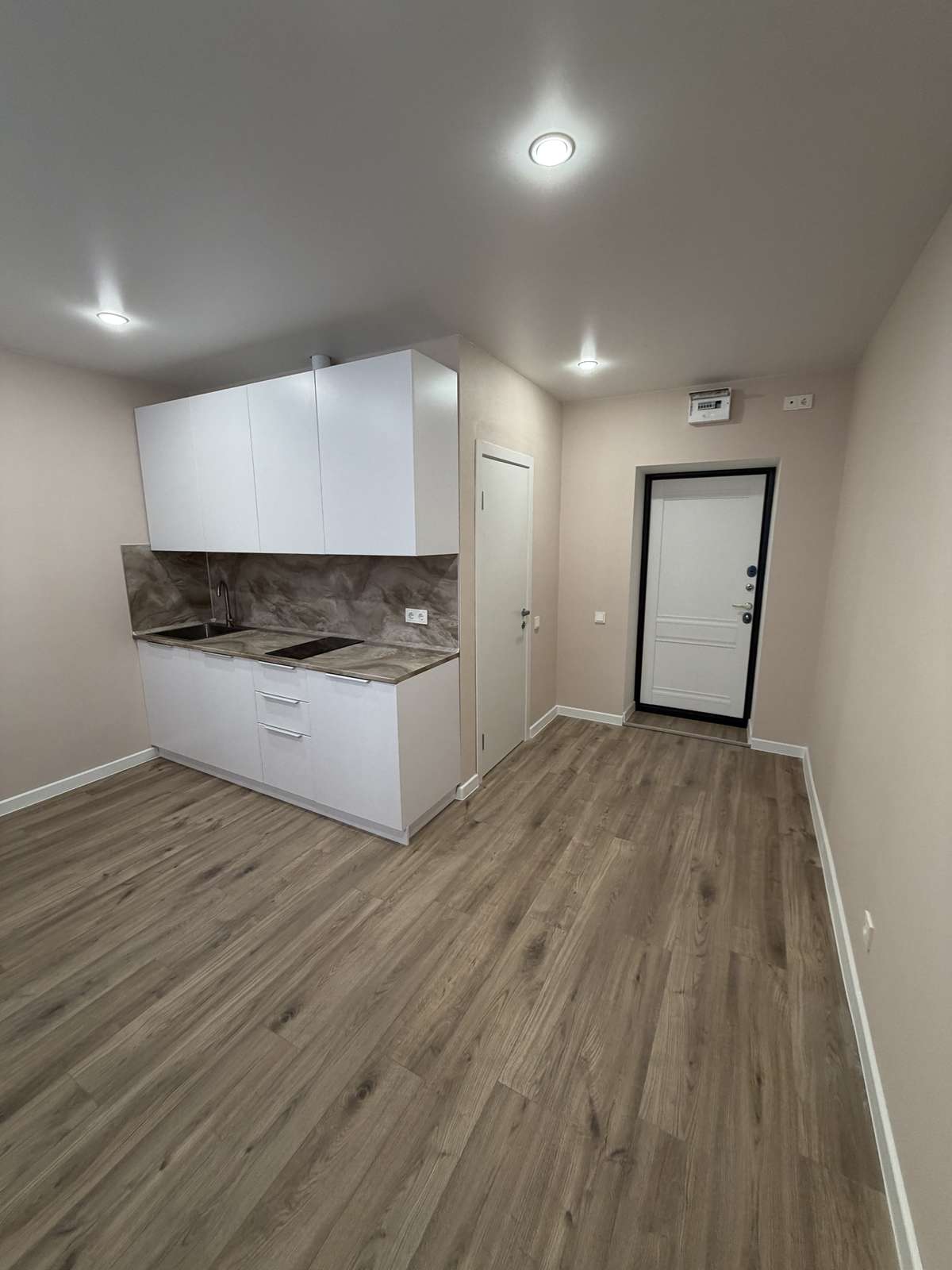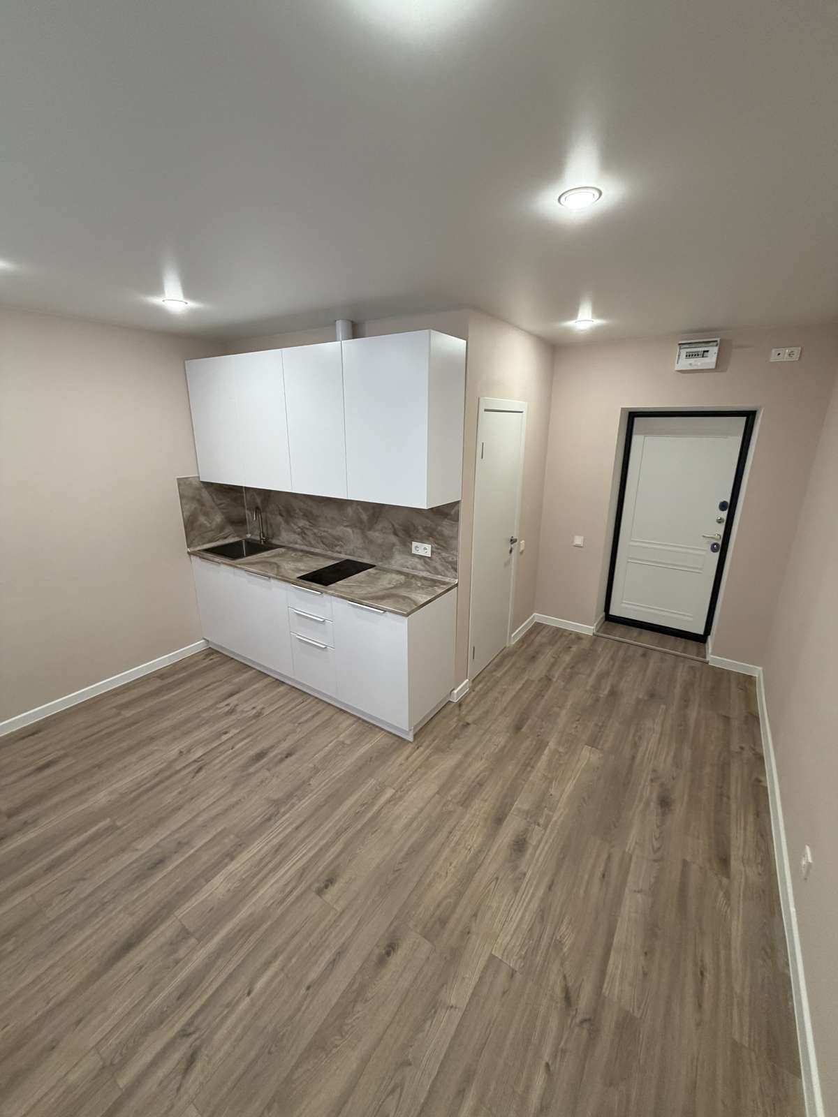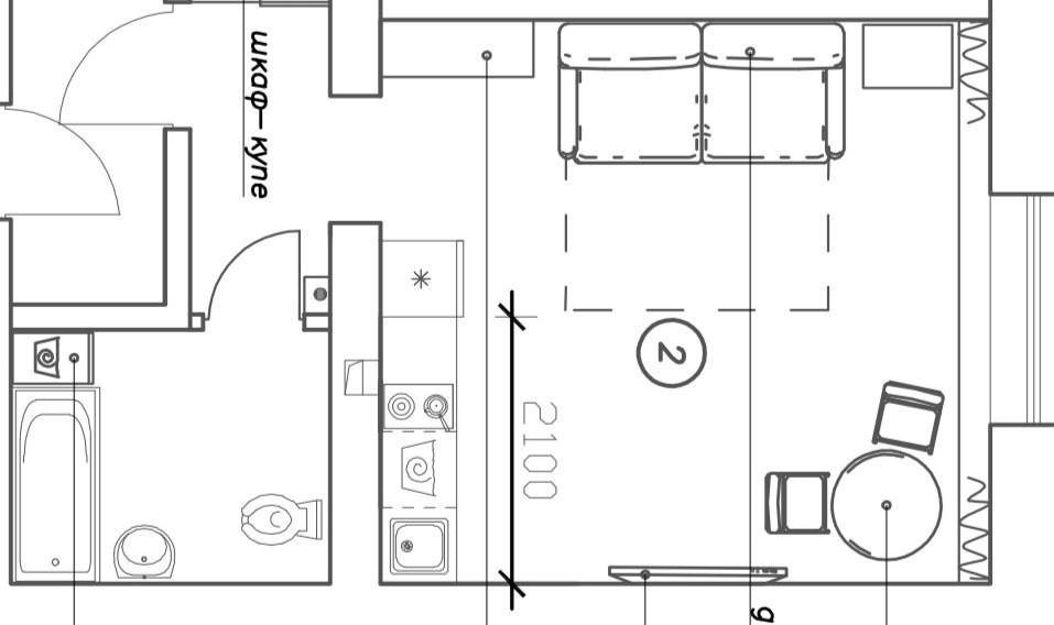 Перед началом проведения отделочных работ в помещении был проведен качественный капитальный ремонт. Стяжка пола, штукатурка стен. Полностью заменены электрика, трубы, обслужены окна. Установлены счетчики на воду горячую и холодную, электричество. Студия укомплектована кухонным гарнитуром со встроенной техникой.
