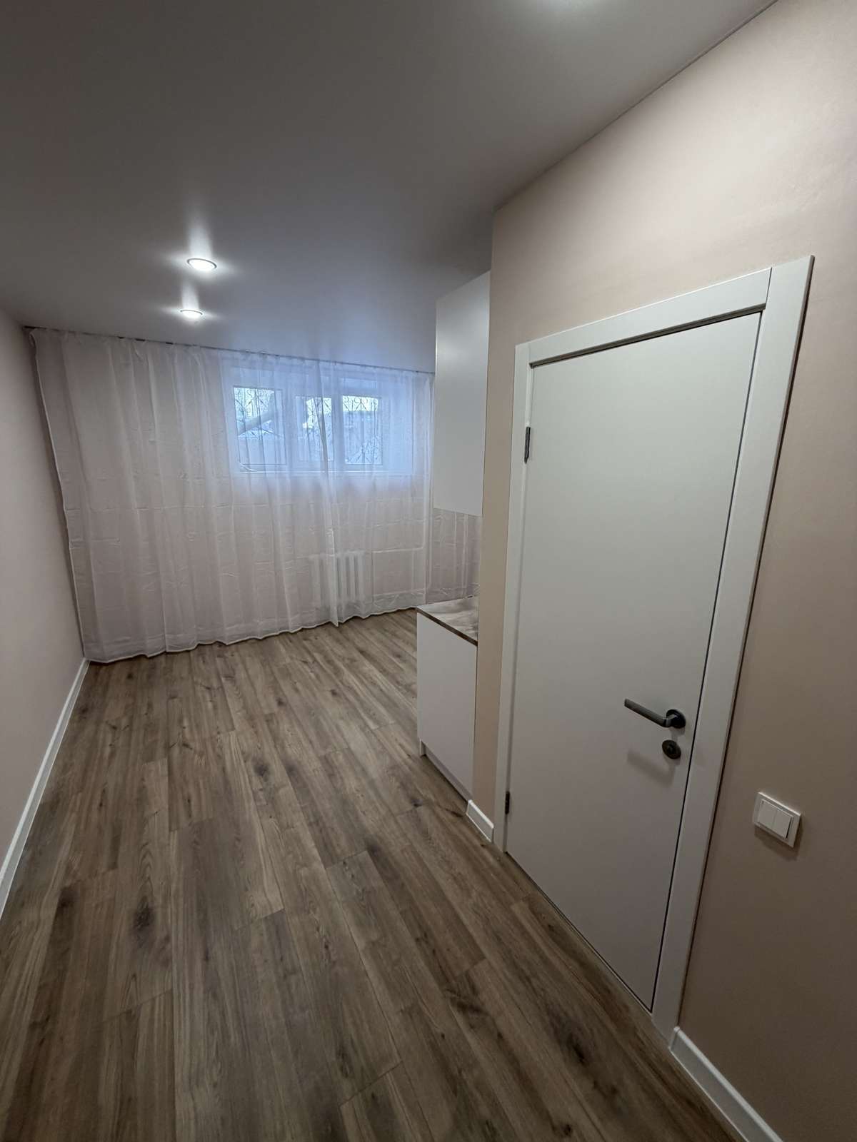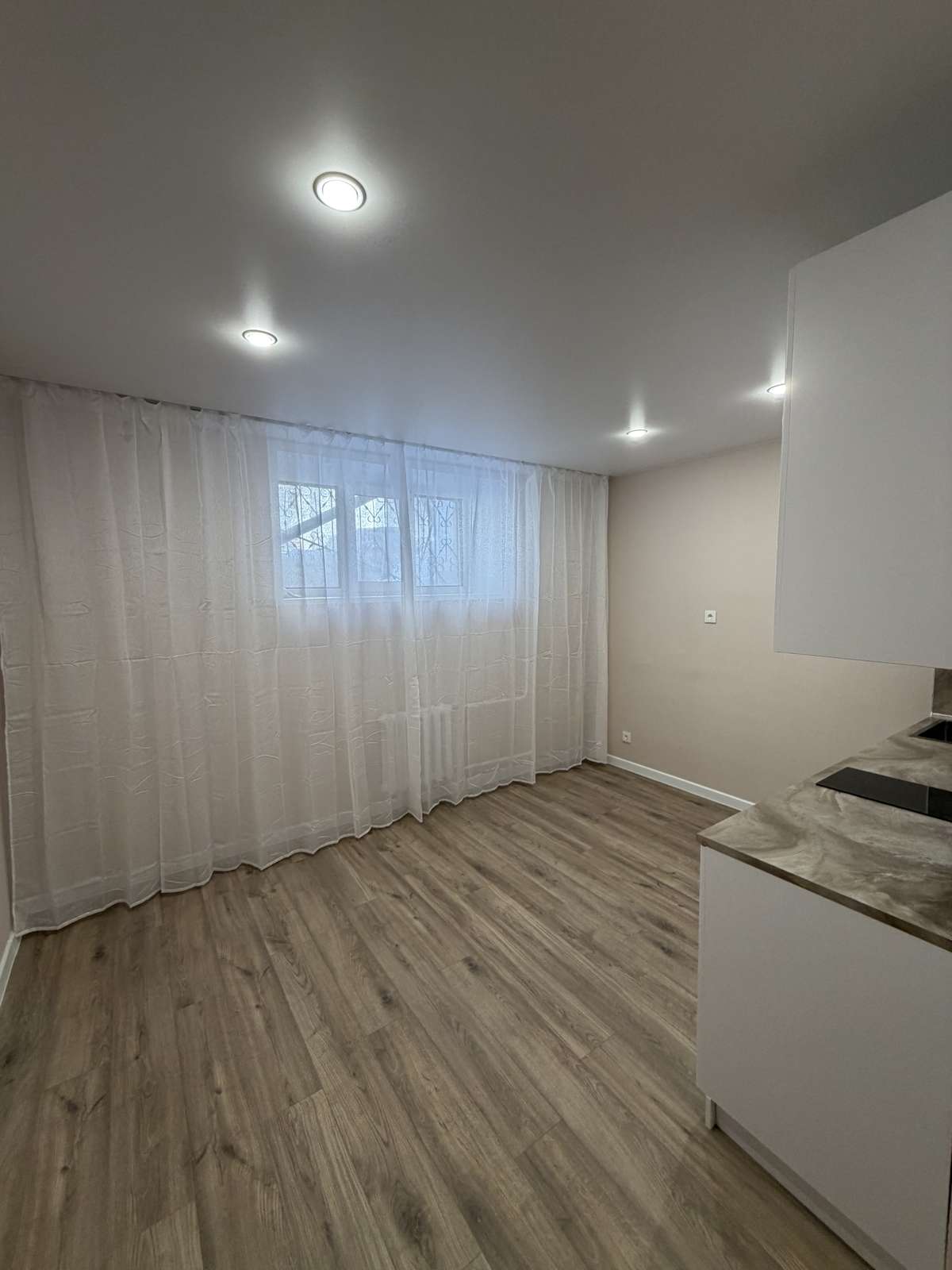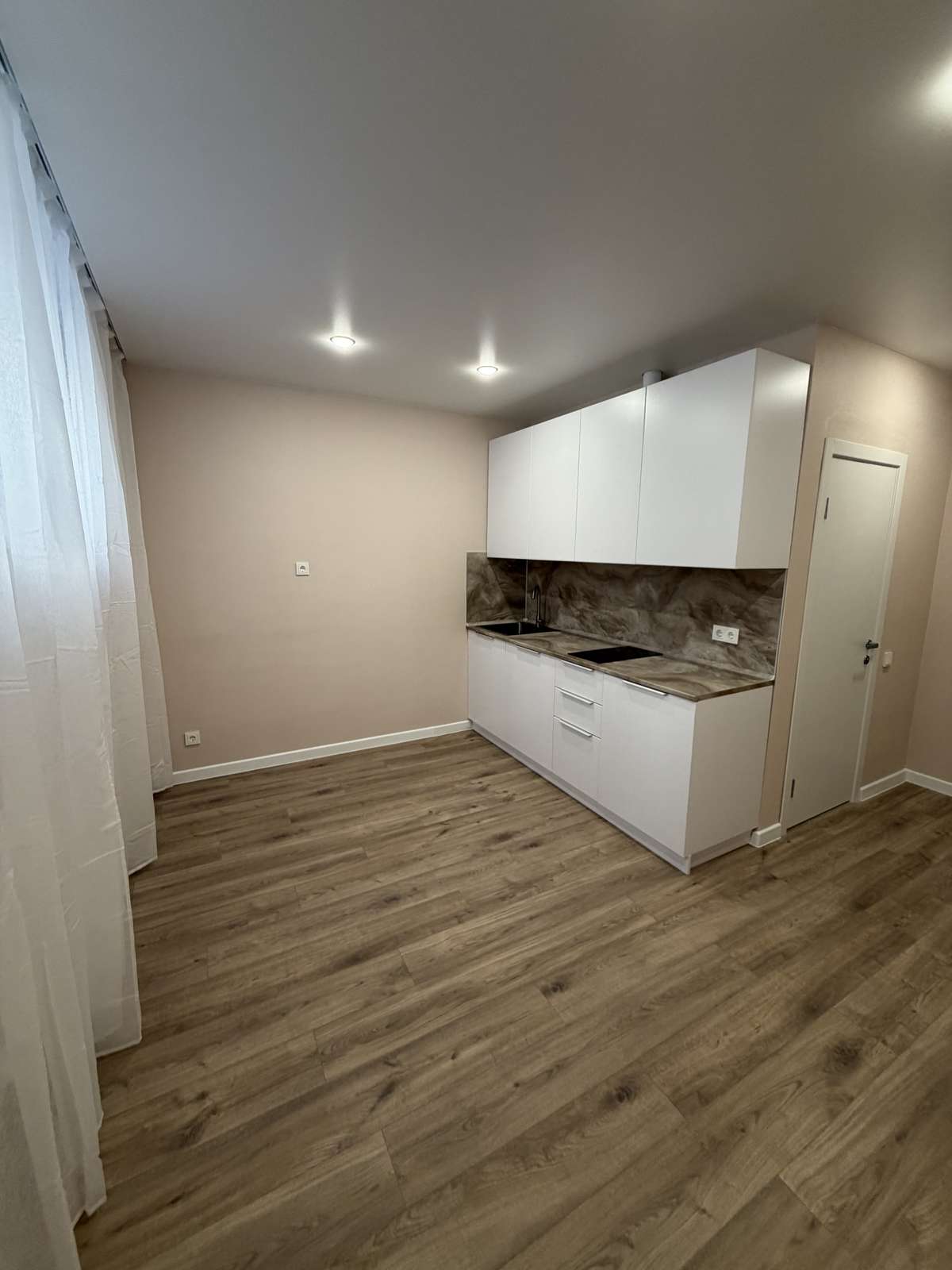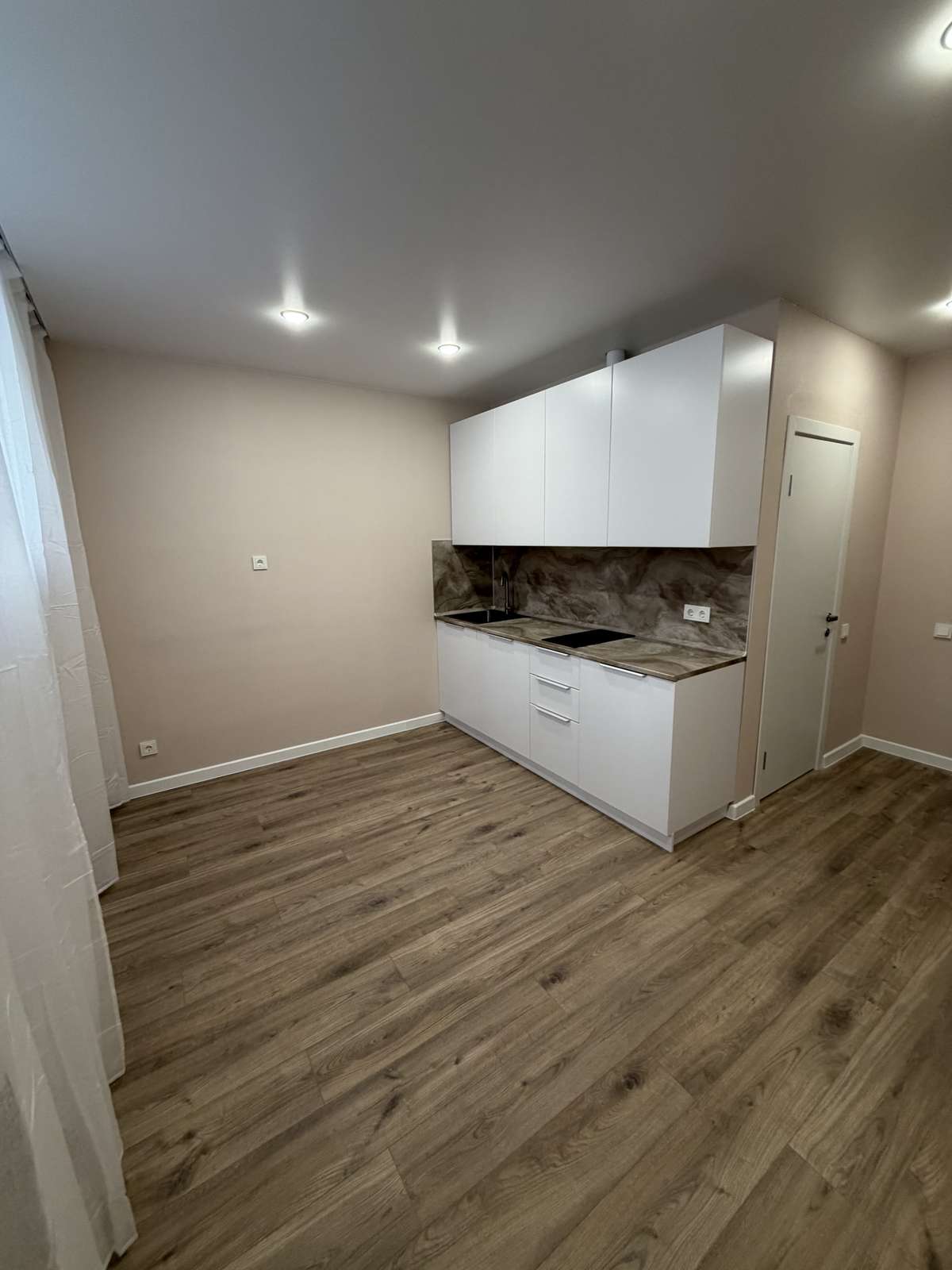 Перед началом проведения отделочных работ в помещении был проведен качественный капитальный ремонт. Стяжка пола, штукатурка стен. Полностью заменены электрика, трубы, обслужены окна. Установлены счетчики на воду горячую и холодную, электричество. Студия укомплектована кухонным гарнитуром со встроенной техникой.