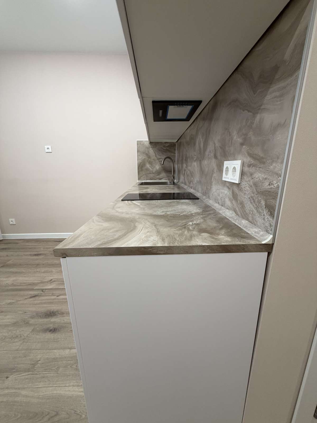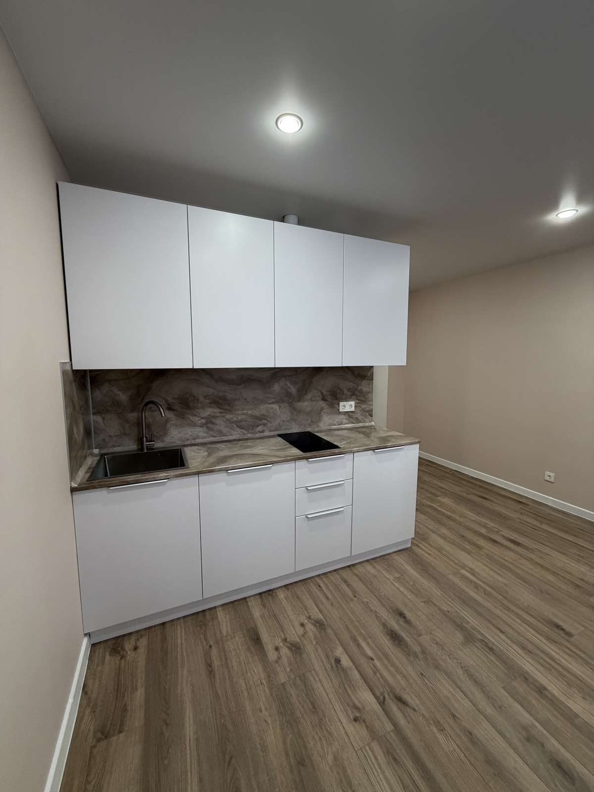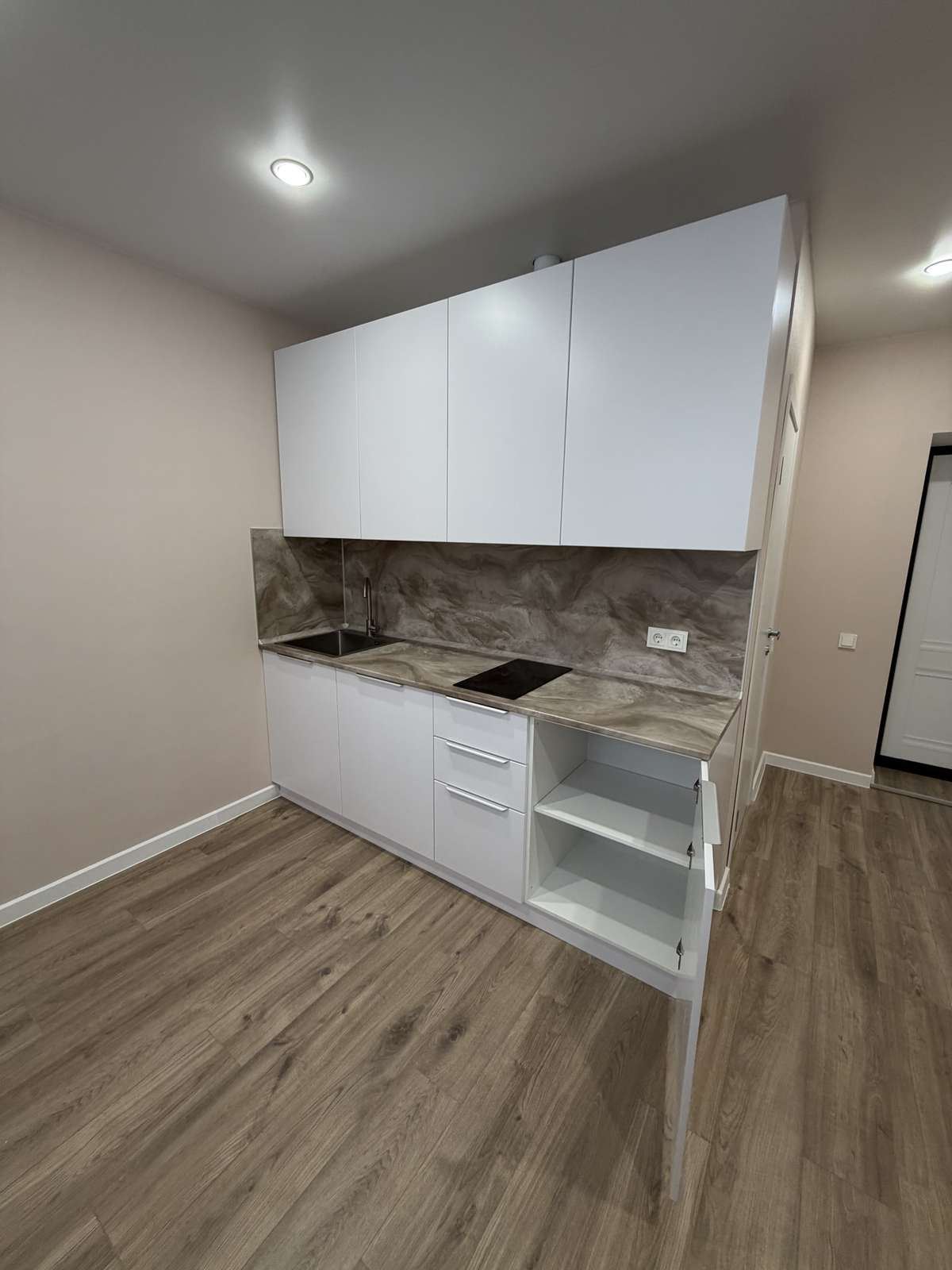 Перед началом проведения отделочных работ в помещении был проведен качественный капитальный ремонт. Стяжка пола, штукатурка стен. Полностью заменены электрика, трубы, обслужены окна. Установлены счетчики на воду горячую и холодную, электричество. Студия укомплектована кухонным гарнитуром со встроенной техникой.