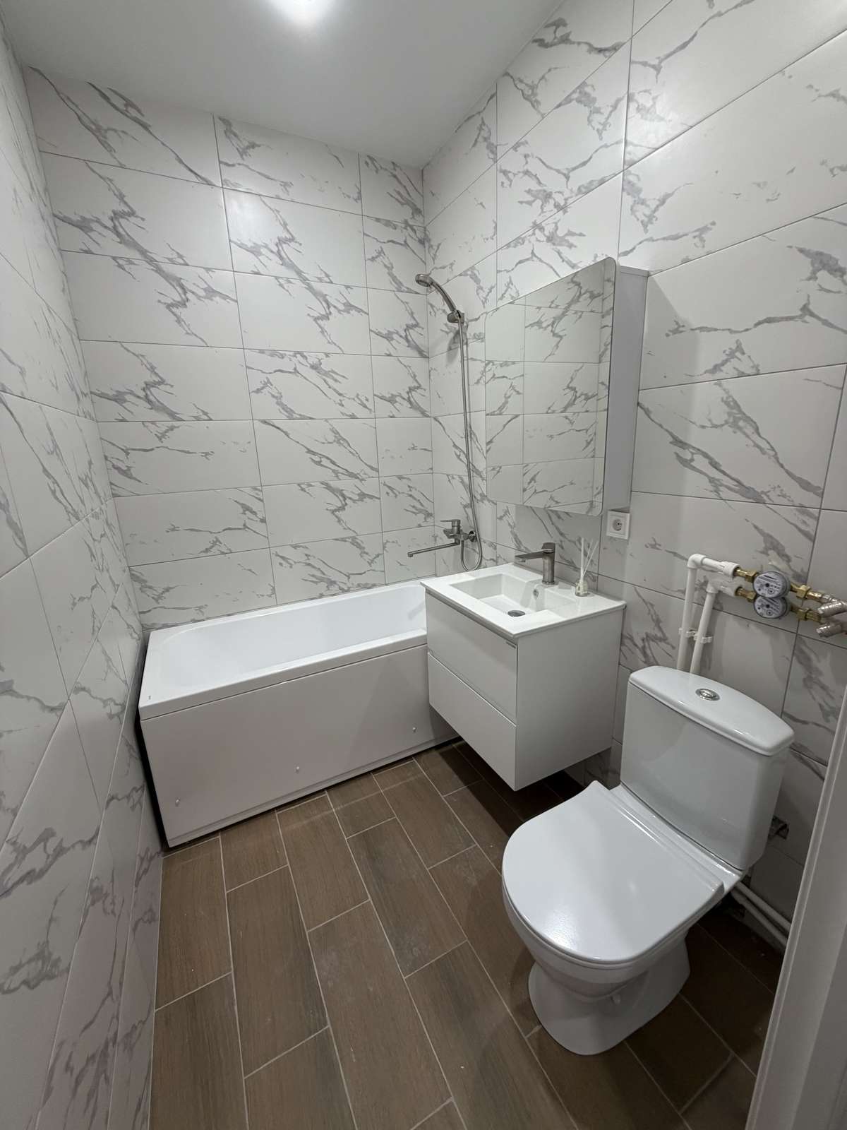 В каждой студии выполнен ремонт «под ключ». Установлены новые железные и межкомнатные двери. Санузел выложен плиткой, оборудован необходимыми сантехпредметами, зеркало, тумба. Предусмотрено место под стиральную машинку с выводами для подключения.