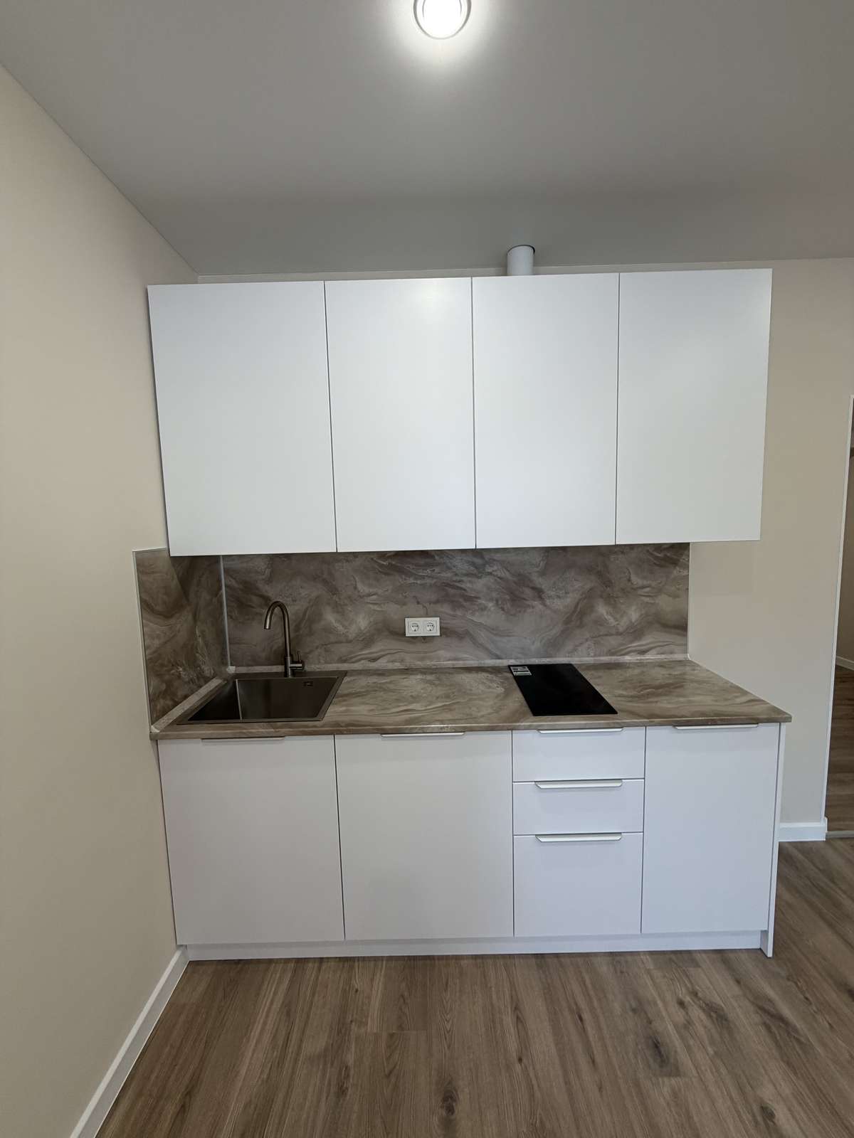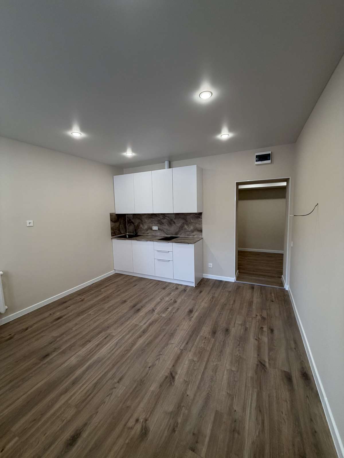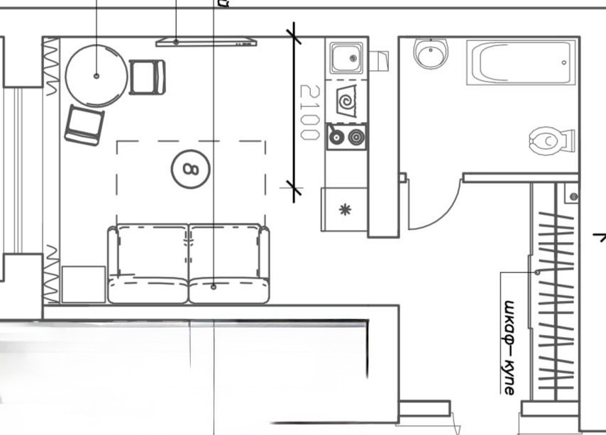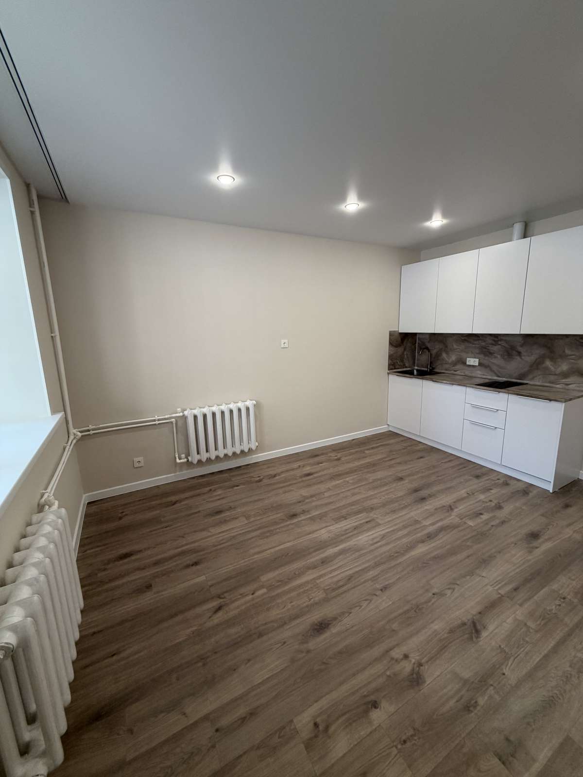 Перед началом проведения отделочных работ в помещении был проведен качественный капитальный ремонт. Стяжка пола, штукатурка стен. Полностью заменены электрика, трубы, обслужены окна. Установлены счетчики на воду горячую и холодную, электричество. Студия укомплектована кухонным гарнитуром со встроенной техникой.