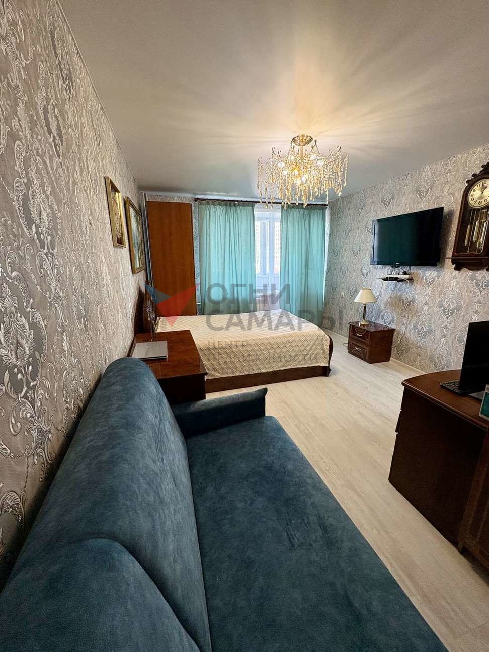 - Комната: кровать, диван, шкаф, телевизор.