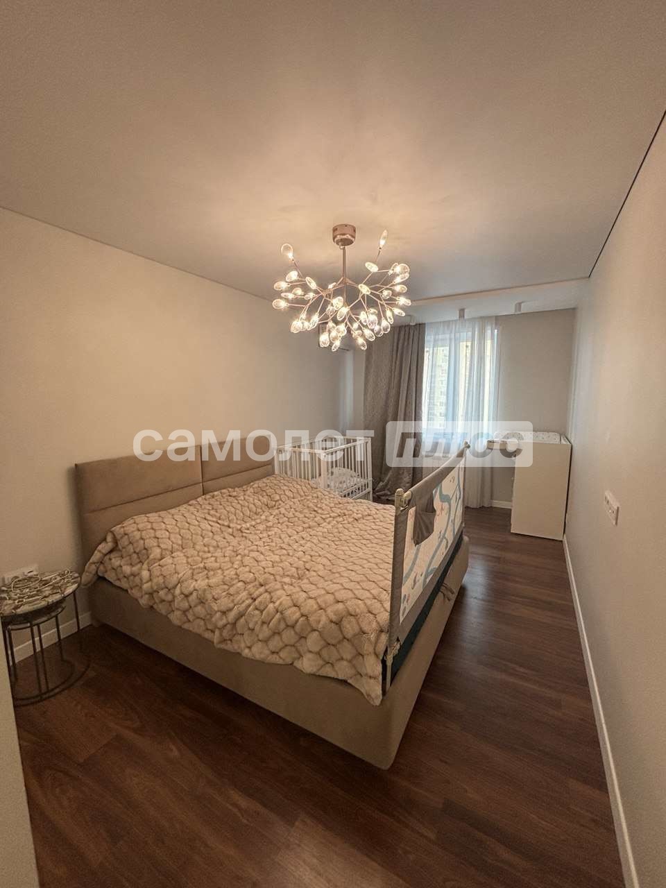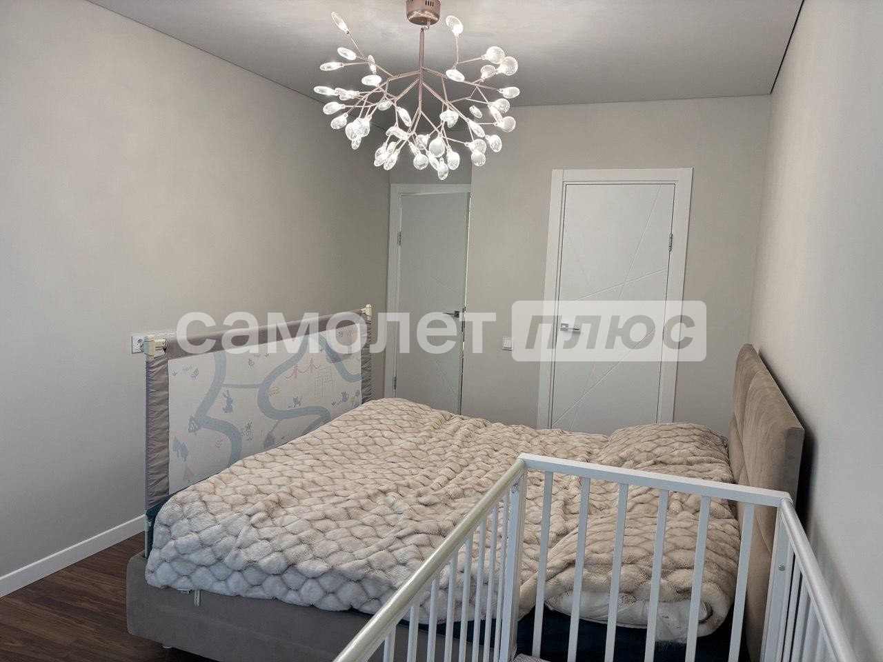 Двуспальная кровать и диван (раскладывается), сплит система в каждой комнате.