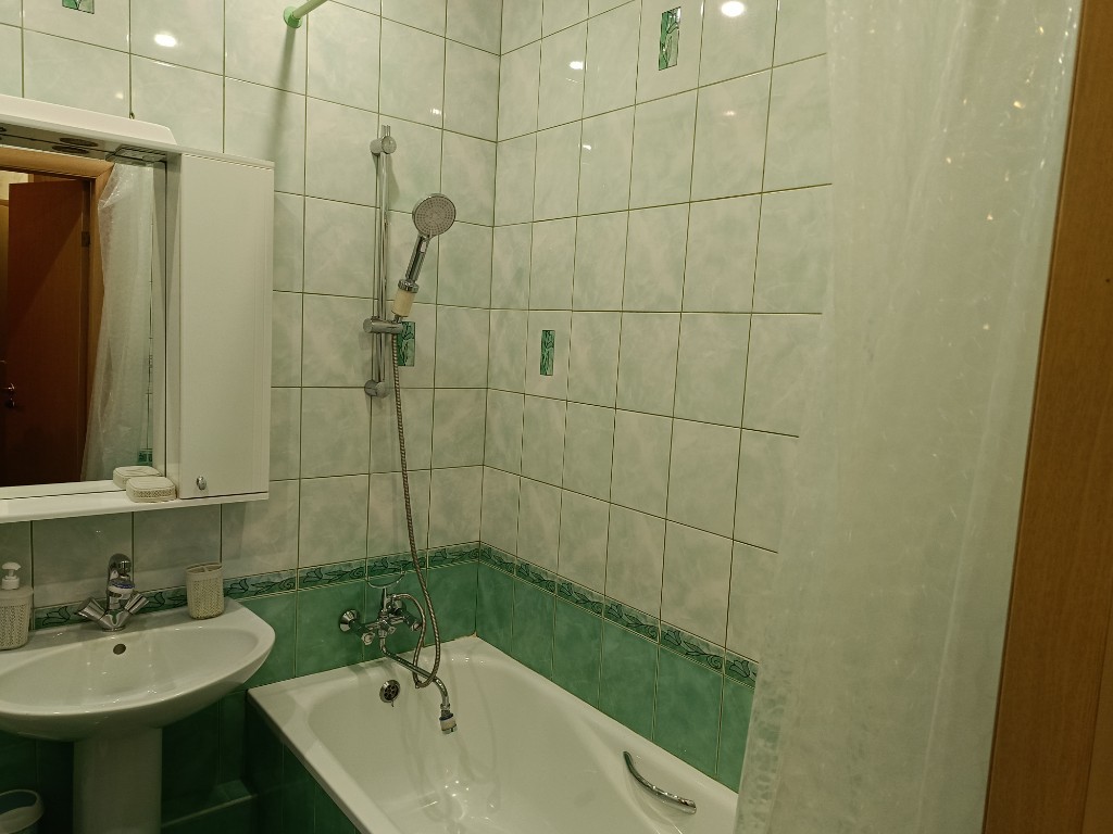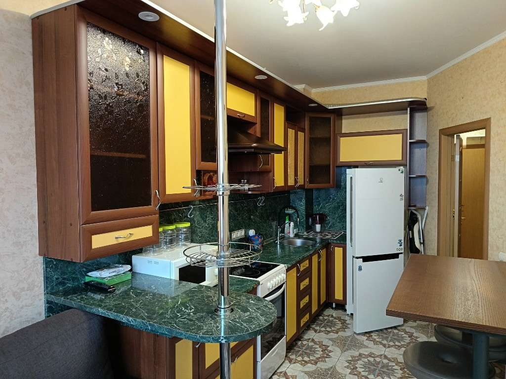 Уют и продуманный ремонт: кухня с барной стойкой для дружеских посиделок и диван, который превращается в полноценное двуспальное место. Практичный кафель на полу в кухне и коридоре. Новый водонагреватель в ванной на случай отключения горячей воды.