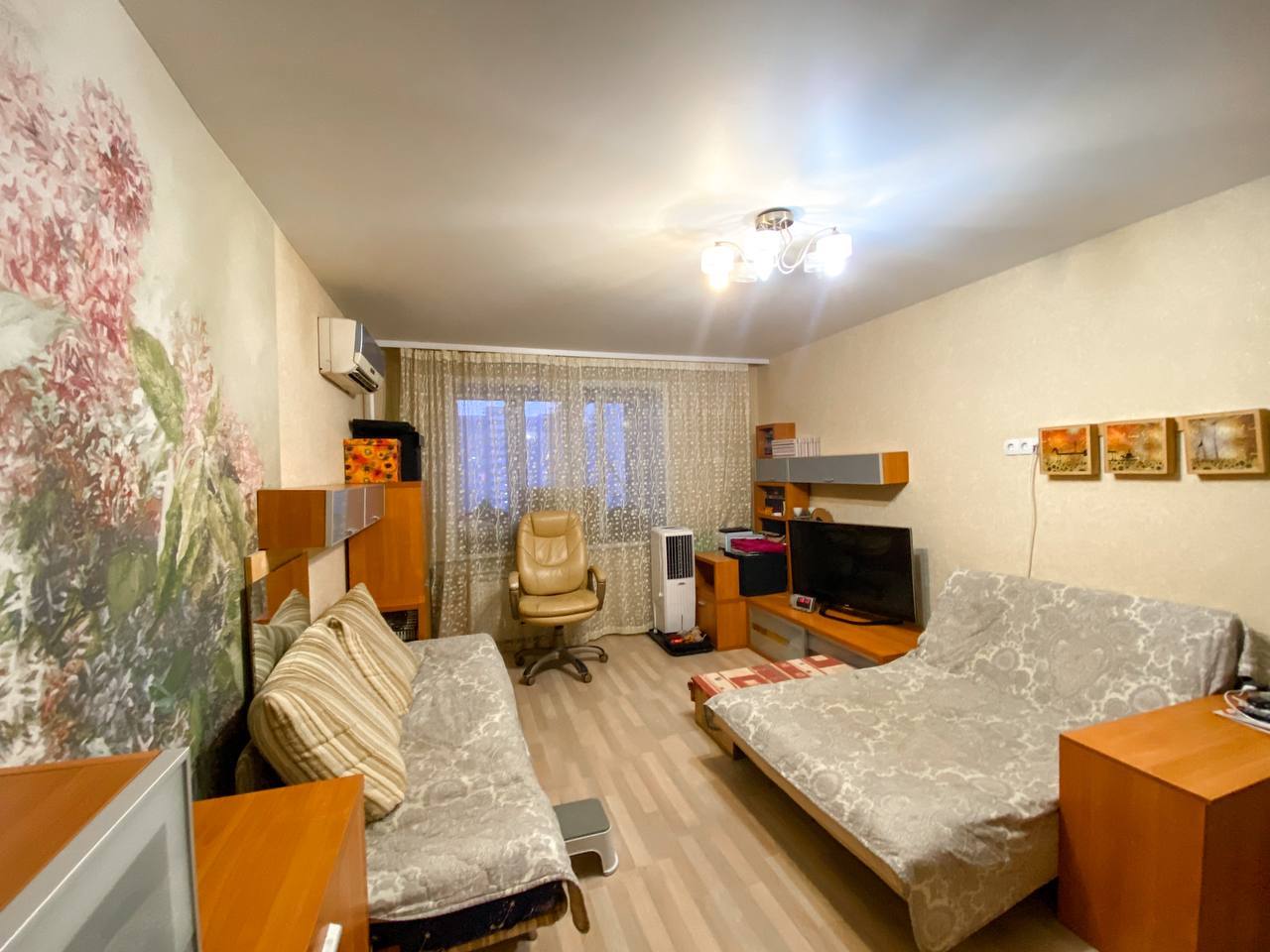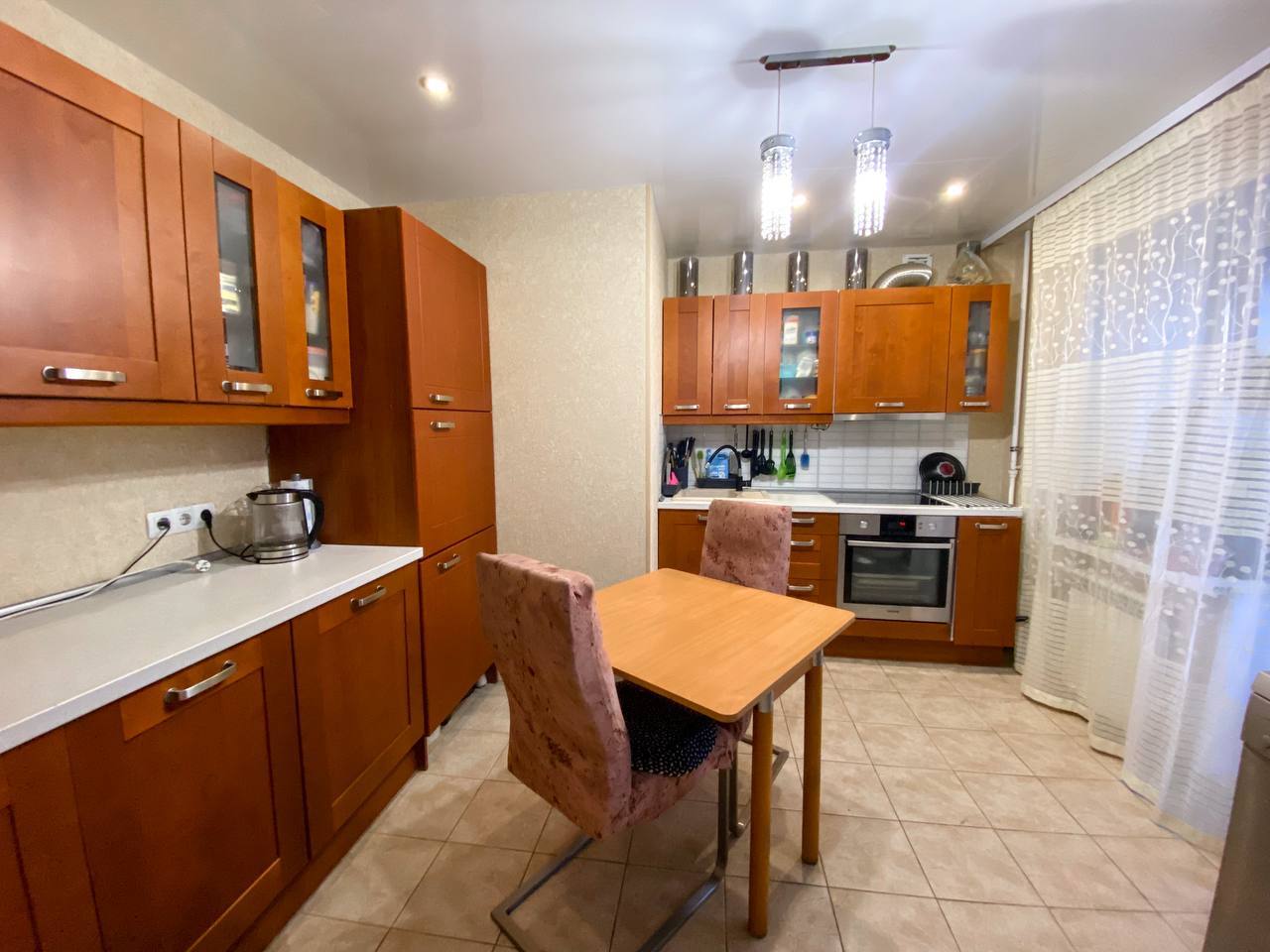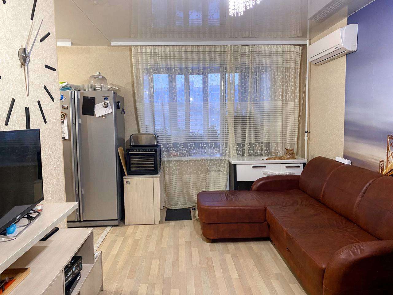 12/17 кирп. 81,5/48,2/11, площадь указана без учета двух больших лоджий по 8 кв.м., застеклены пластиком. с/узел раздельный, душевая кабина (можно установить ванную). Комнаты раздельные 19,6+12,6 кв.м. и комната 16 кв.м. присоединена к кухне, получилась большая кухня-гостиная 27 кв.м. Отличное жилое состояние. Остается кухонный гарнитур со встроенной техникой и почти вся мебель в комнатах. Кондиционеры, водонагреватель, счетчики. Хороший двор с детской площадкой. Большая парковка рядом с домом. Школа, детский сад, магазины, аптеки, ТЦ Точка Сити, все в шаговой доступности. Рядом парк и озера. Один взрослый собственник, документы готовы. Ипотека возможна.