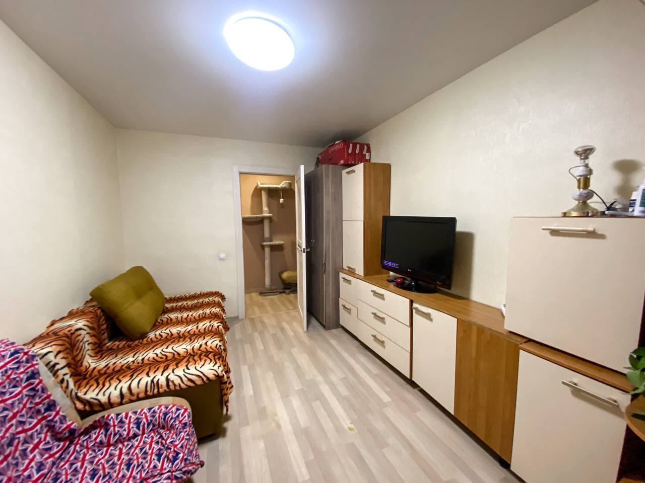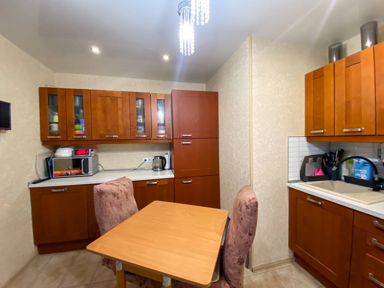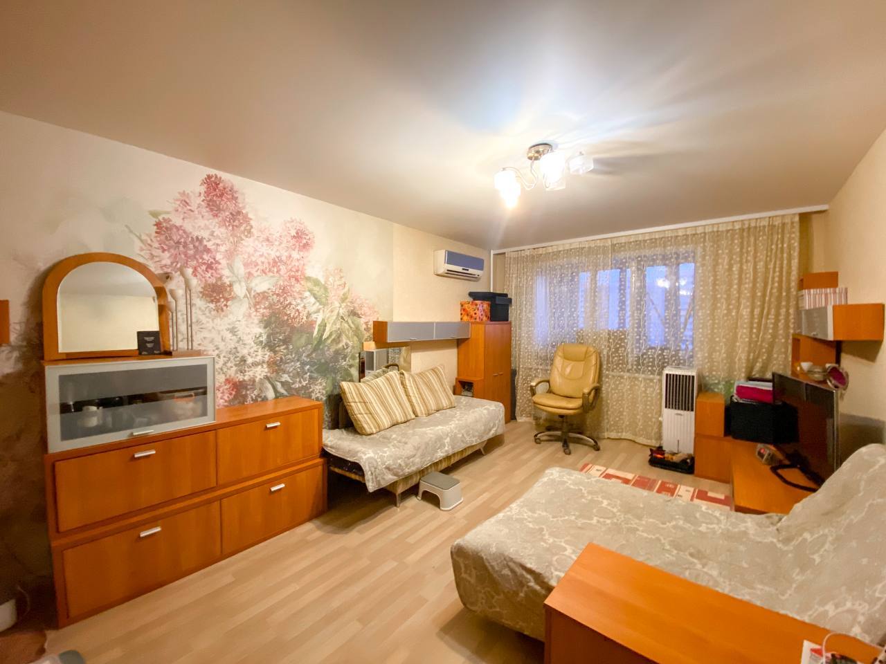 12/17 кирп. 81,5/48,2/11, площадь указана без учета двух больших лоджий по 8 кв.м., застеклены пластиком. с/узел раздельный, душевая кабина (можно установить ванную). Комнаты раздельные 19,6+12,6 кв.м. и комната 16 кв.м. присоединена к кухне, получилась большая кухня-гостиная 27 кв.м. Отличное жилое состояние. Остается кухонный гарнитур со встроенной техникой и почти вся мебель в комнатах. Кондиционеры, водонагреватель, счетчики. Хороший двор с детской площадкой. Большая парковка рядом с домом. Школа, детский сад, магазины, аптеки, ТЦ Точка Сити, все в шаговой доступности. Рядом парк и озера. Один взрослый собственник, документы готовы. Ипотека возможна.