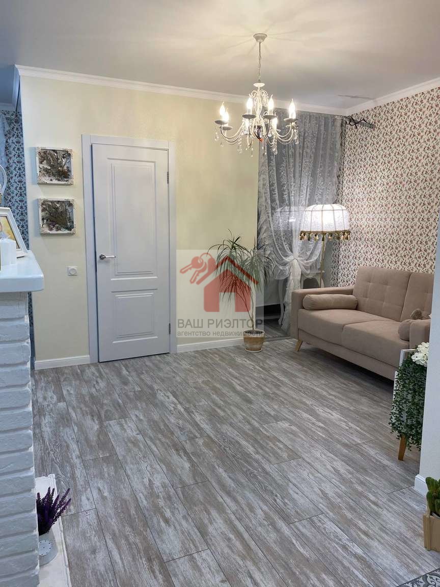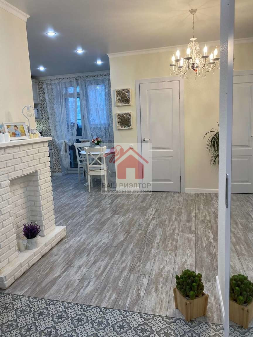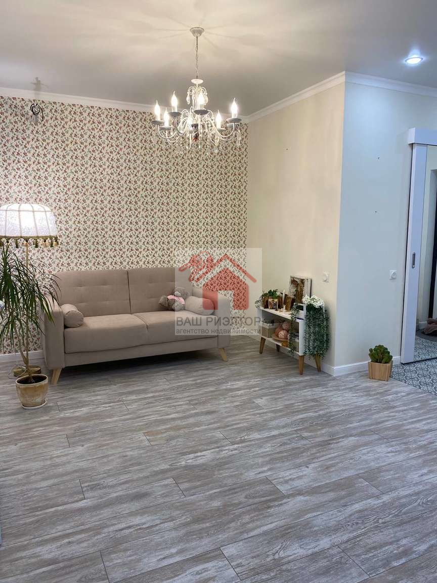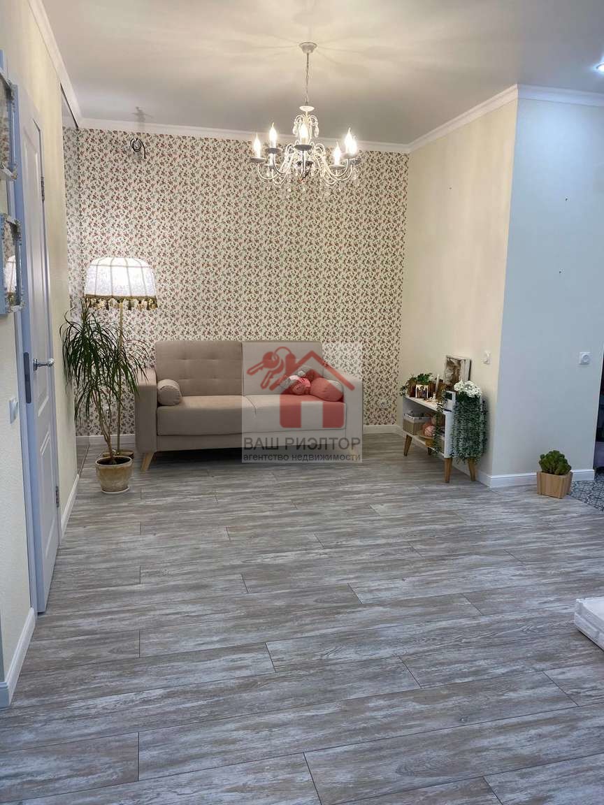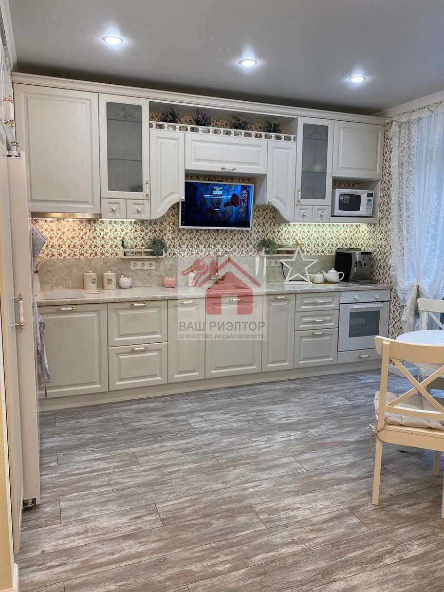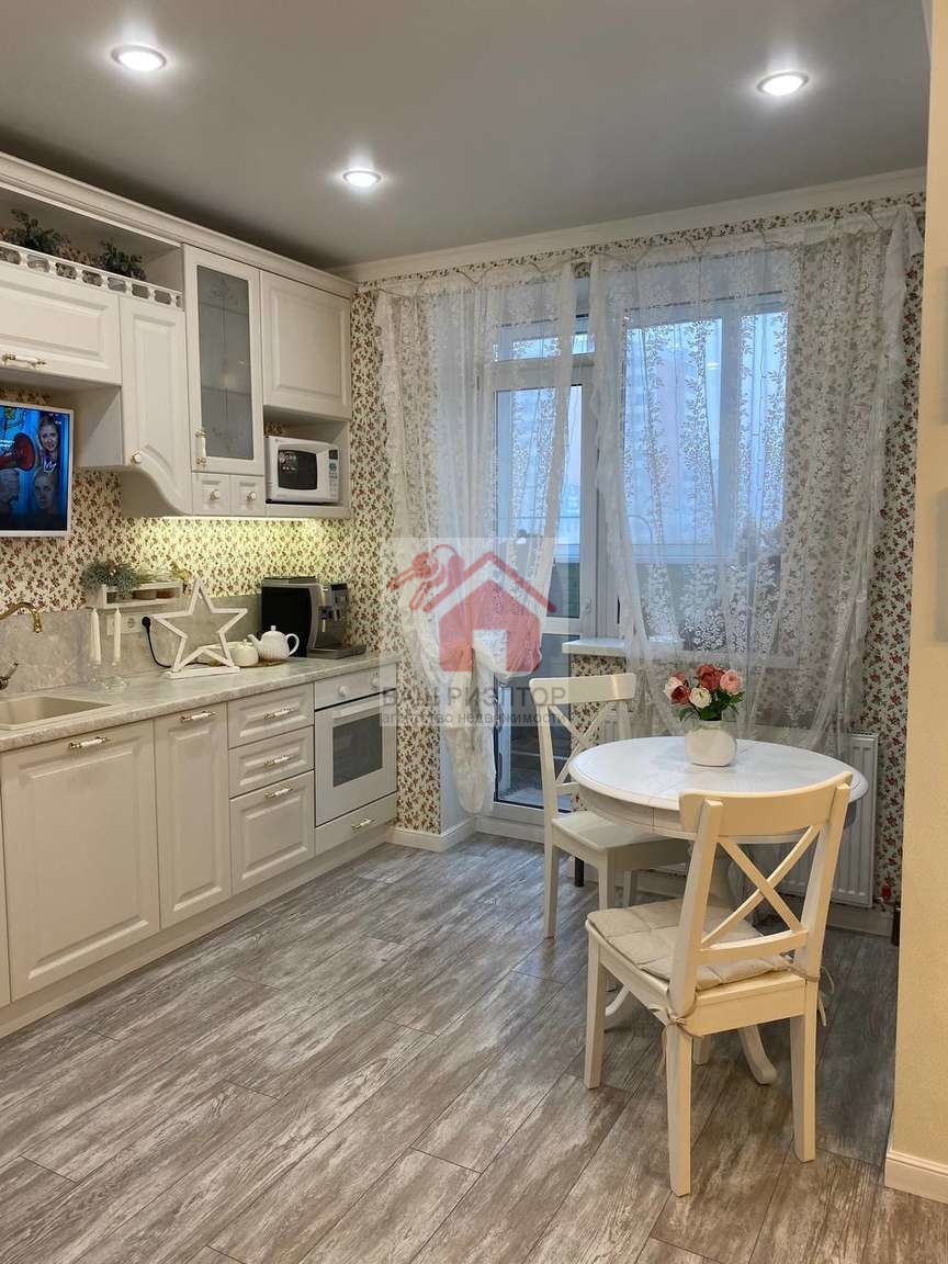 На кухне и комнате ламинат 33 класса. В коридоре и санузле Керамогранит. Присутствует гардеробная. Новый кухонный гарнитур.
