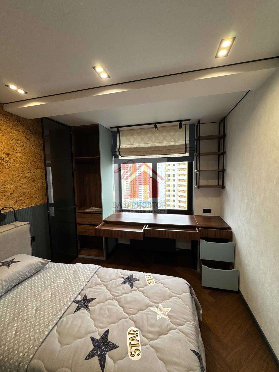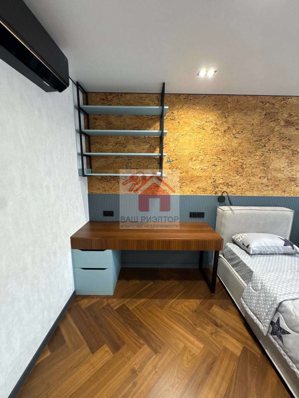 Комната для мальчиков и девочки оснащена всем необходимым - шкаф-гардероб, кровать с ортопедическим матрасом и рабочей зоны.