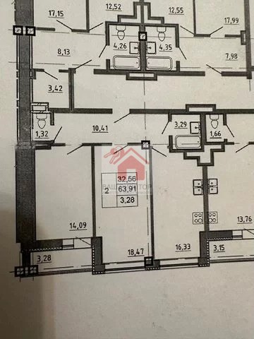 Общая плoщадь 64,08 кв. м. (c бaлкoном 67,36 кв. м.)