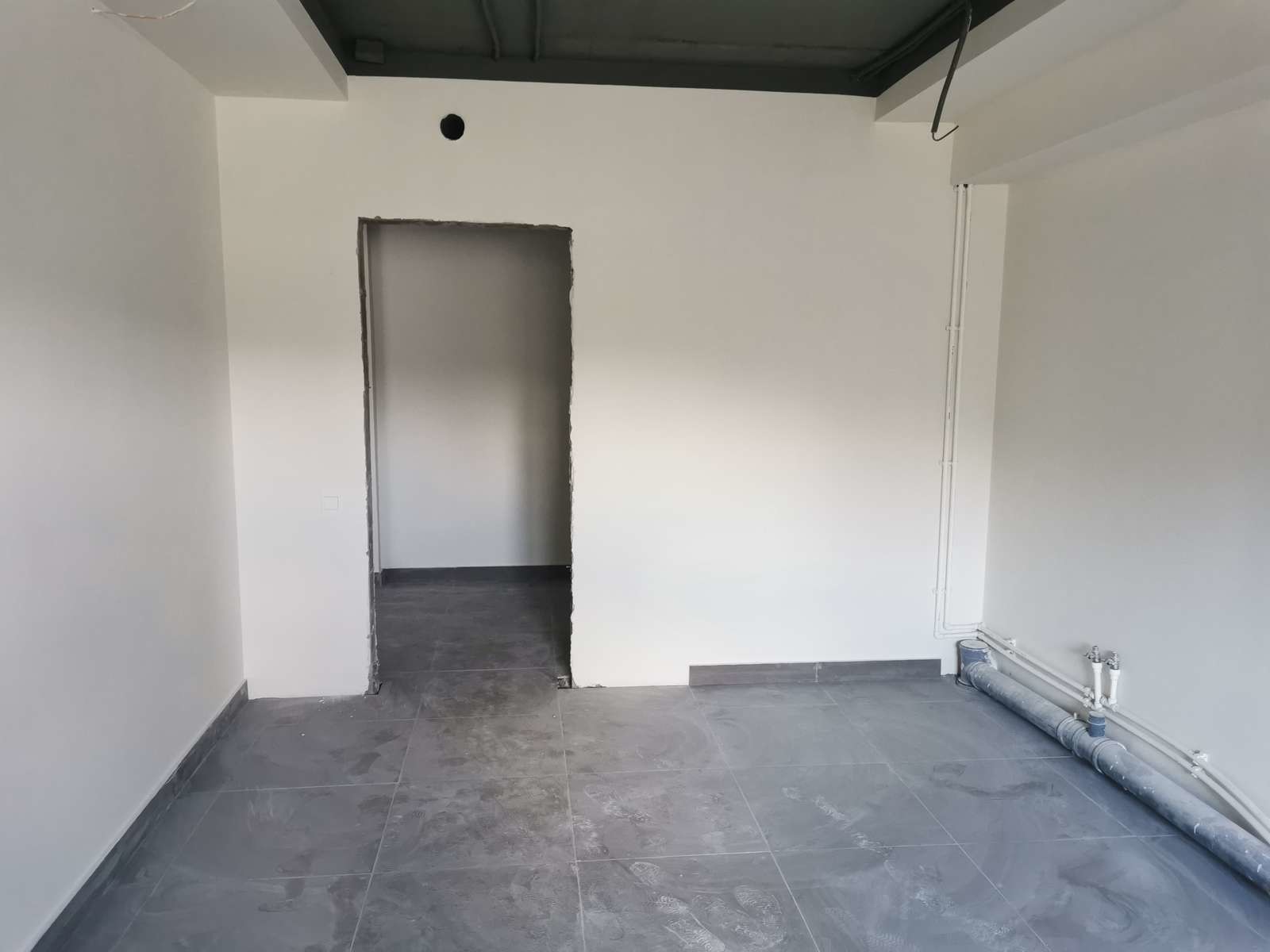 Пол плитка, потолок навесной армстронг, стены покрашены.