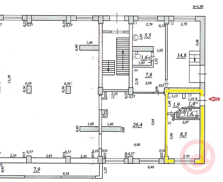 В помещении есть санузел. Высота потолка 3,5 метра. Состояние помещения хорошее.