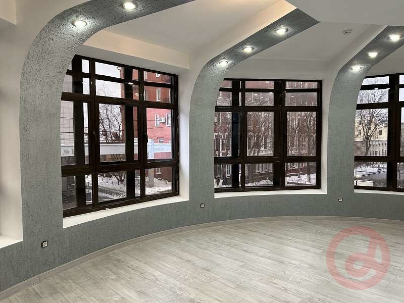 Аренда очень красивого офиса рядом с площадью Куйбышева. Полукруглый зал 26,6 квм с панорамными окнами в пол. Кабинет 11,1 кв.м. Небольшая кухня. Свой санузел. Центральное кондиционирование и вентиляция. 2 провайдера Интернет. Есть платная охраняемая парковка (за дополнительную плату).