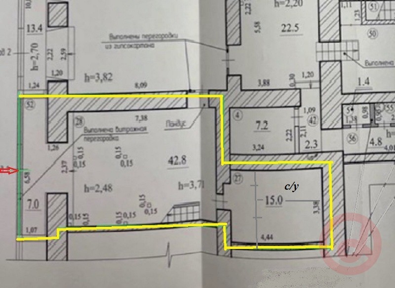 Аренда помещения 87,6 квм с отдельным входом с переулка Высоцкого. Витражное остекление. Помещение в двух уровнях: первый этаж 64,8 кв.м, антресоль 22,8 кв.м. На антресоли высота потолка 2,2 метра, имеются 4 окна. Электрическая мощность 15 кВт.