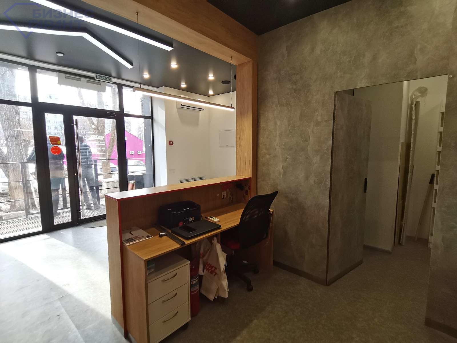 Помещение светлое, высокие потолки. В помещении сделан хороший ремонт, свой с/у. Центральные коммуникации. Установлены пожарная и охранная сигнализации. Возможно размещение рекламы на фасаде, которая будет хорошо просматриваться с дороги.