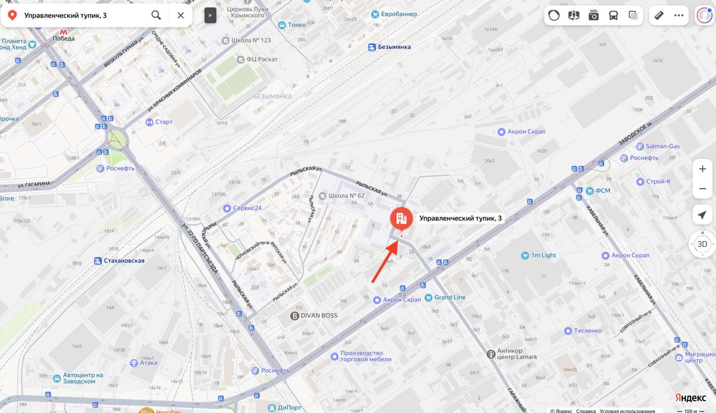 | Адрес | Самара, Промышленный, Управленческий тупик,3 |