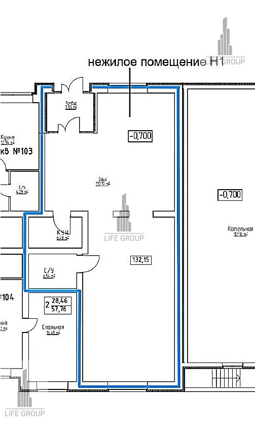 Помещение на данный момент находится в черновой отделке, свободная планировка. Несколько мокрых точек. Выделенная электрическая мощность 20 кВт.