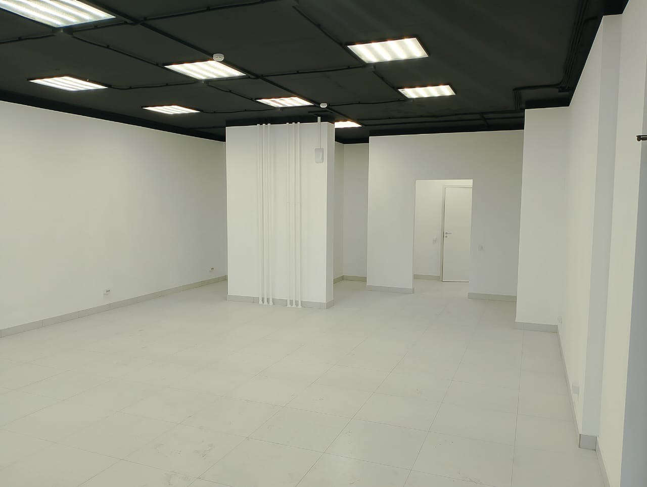 Отдельный вход, свободная планировка. Имеются все необходимые коммуникации. В данный момент в помещении ведутся ремонтные работы: укладка керамогранита на пол, потолок и стены – покраска, установка сантехники и освещения.