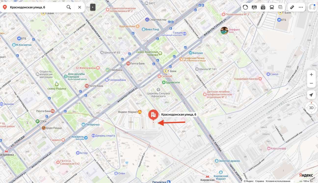 | Адрес | Самара, Промышленный, Краснодонская улица,6 |