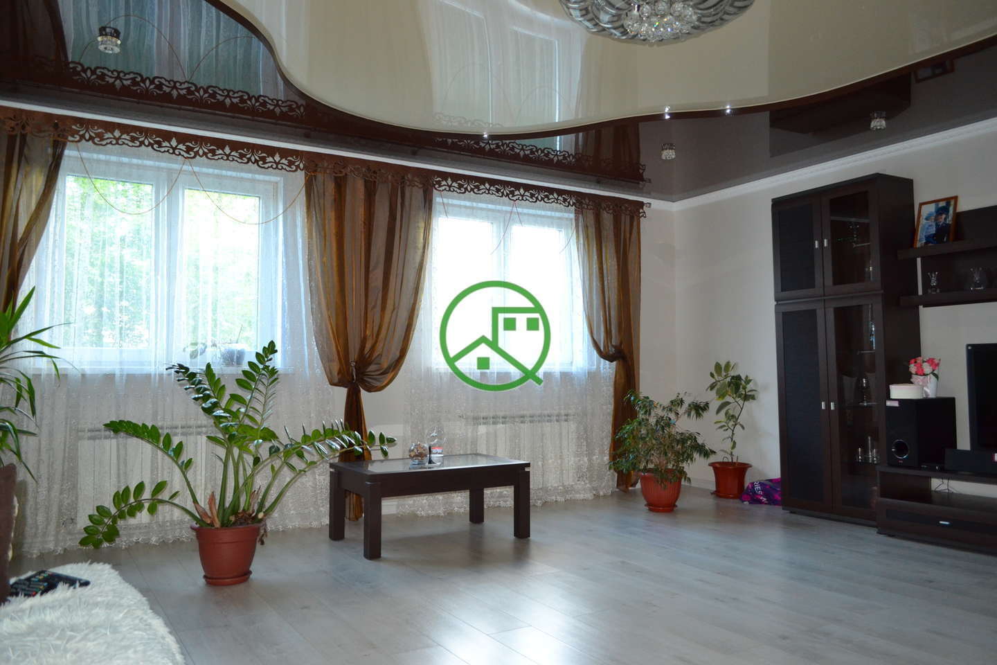 В доме проведён газ, есть водопровод, автономное отопление и канализация. Выполнен ремонт, залиты полы, на первом этаже полы с подогревом,натяжные потолки, пластиковые стеклопакеты, качественные межкомнатные двери. Мебель остается по договоренности.
