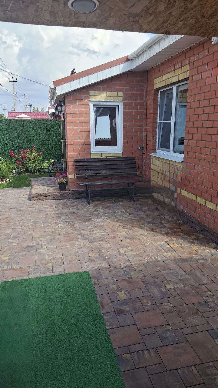 - двор выложен брусчаткой