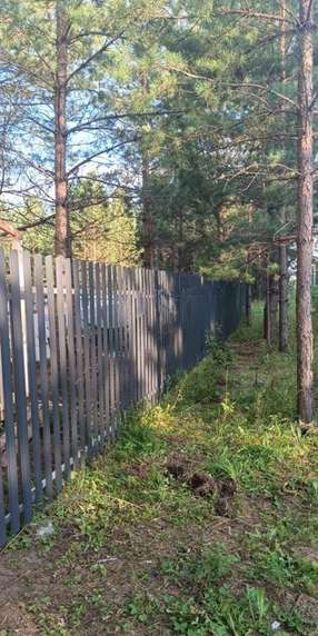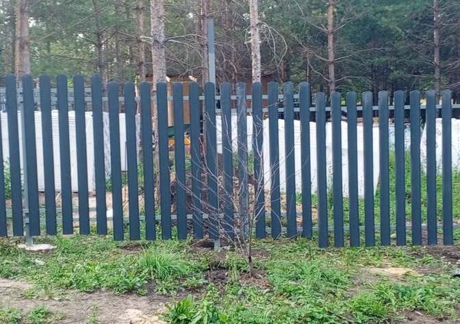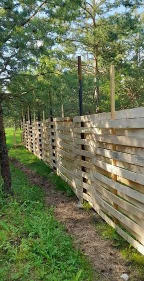 Ограждение: 2 стороны — плетёнка из дерева, 2 стороны — штакетник.