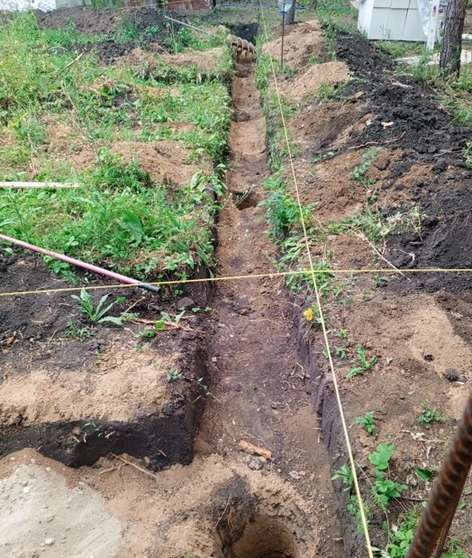 На участке уже выполнены подготовительные работы:выкопан котлован под фундамент, собран армопояс, установлена опалубка под заливку.