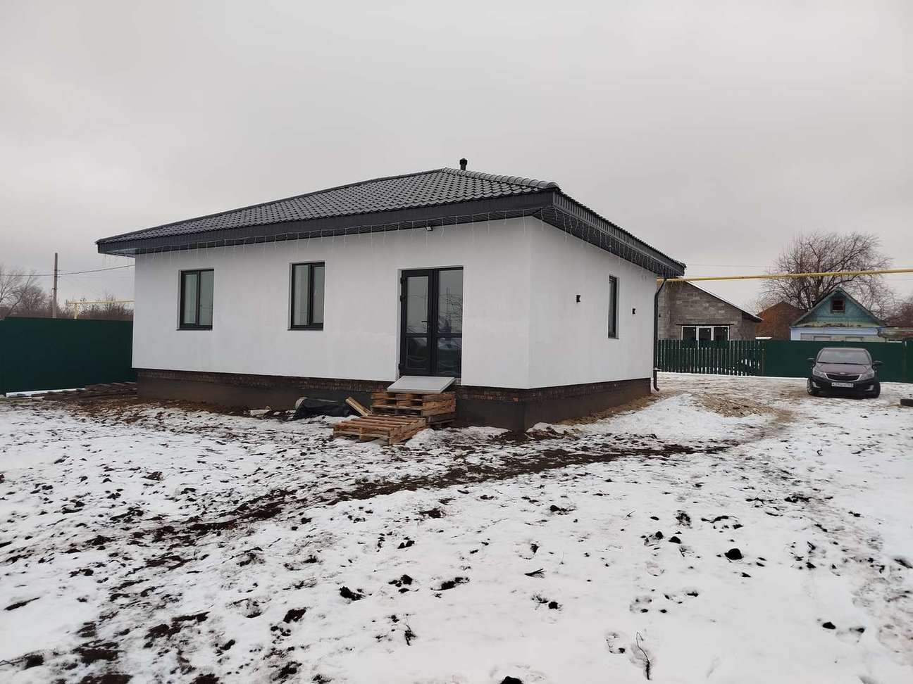 Срочно продается новый жилой дом в чистовой отделке! Подходит семейная ипотека! В доме 3 комнаты, кухня гостиная, приходая , котельная и санузел. На полу плитка и ламинат, потолки натяжные. Обои можем поклеить на ваш выбор, все обсуждаемо. Дом стоит на сваях, фундамент ленточный, крыша металлочерепица. Крыша и фасад утеплённые. Полы все с подогревом. Входная дверь с терморазрывом, не промерзает. Дорога к дому асфальтированная. Соседние дома все жилые. Неподалёку детская площадка и остановка. В 5 минутах езды магазин "Пятёрочка".