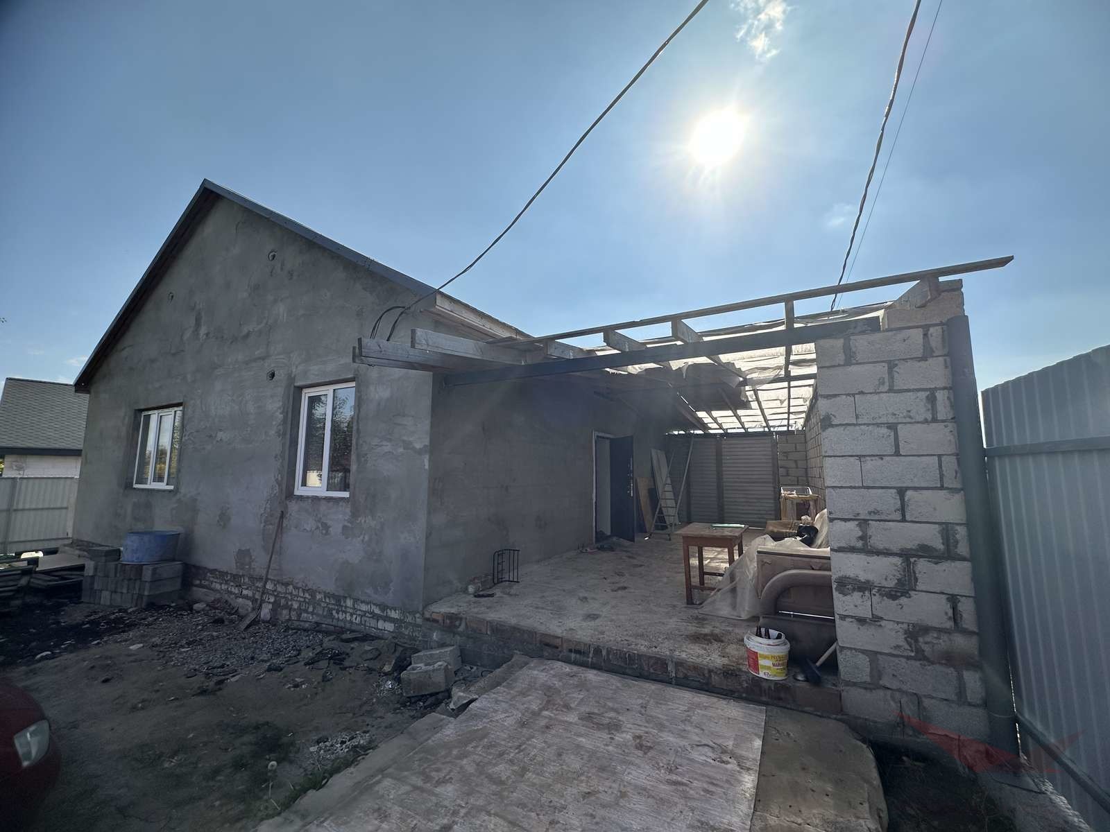 Границы согласованы, межевание проведено. На участке жилой дом 90 м , размером 9/10 со всеми удобствами с ремонтом. Кухня около 14 м, 3 комнаты- зал 22 м, и 2 спальни 16 и 9 м. Дом 2023 г.,строился качественно для себя. Фундамент 1,5 м плюс дом поднят от земли еще на 1,5 м , поднимали уровень земли. армирования стяжка 18 см. Построен из керамзитных блоков, плюс стеновые плиты. Большая терраса около 40 м. Высота потолка 3 м. В доме погреб около 20 м.