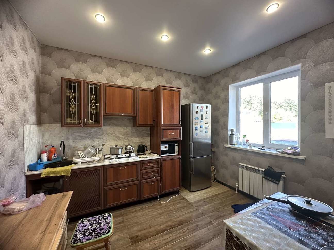 Дом полностью в жилом состоянии, Электическое отопление-котел и водонагреватель. из доработок-фасадная часть и крыша террасы. Собственная скважина 86 м, центральное электричество 15 кВт, переливная автономная канализация- 3,5 кольца), газ подведен к дому( выведен сосок, на одном из фото видно). 1 собственник прямая продажа. Имеется видеообзор. По запросу пришлем
