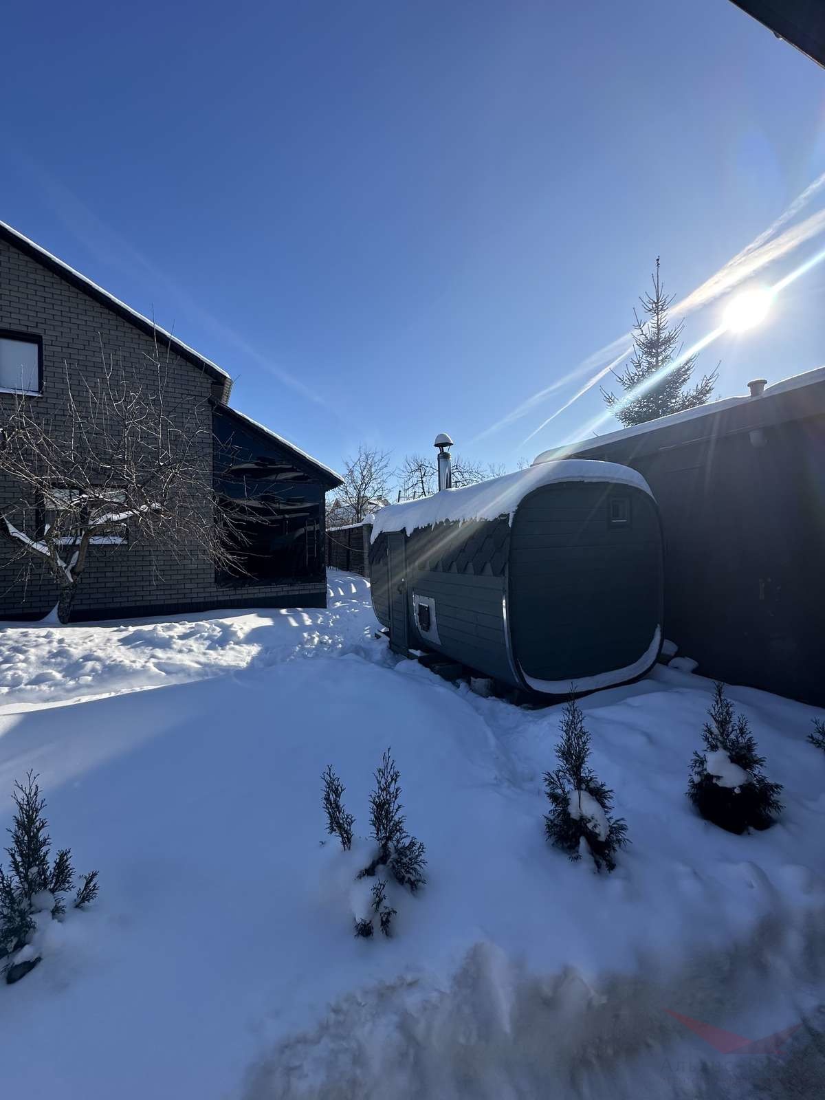 Территория ухожена есть насаждения , установлена баня,есть парковка.
