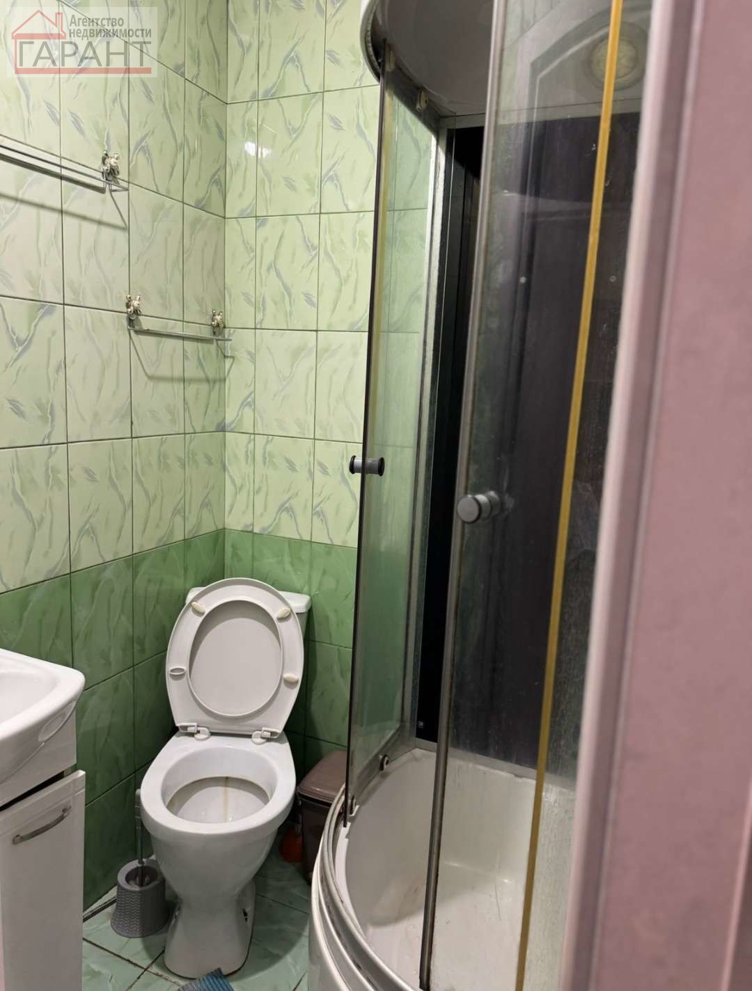 Стены выровнены, на полу ламинат. Сан узел отделан плиткой. Установлена душевая кабина.