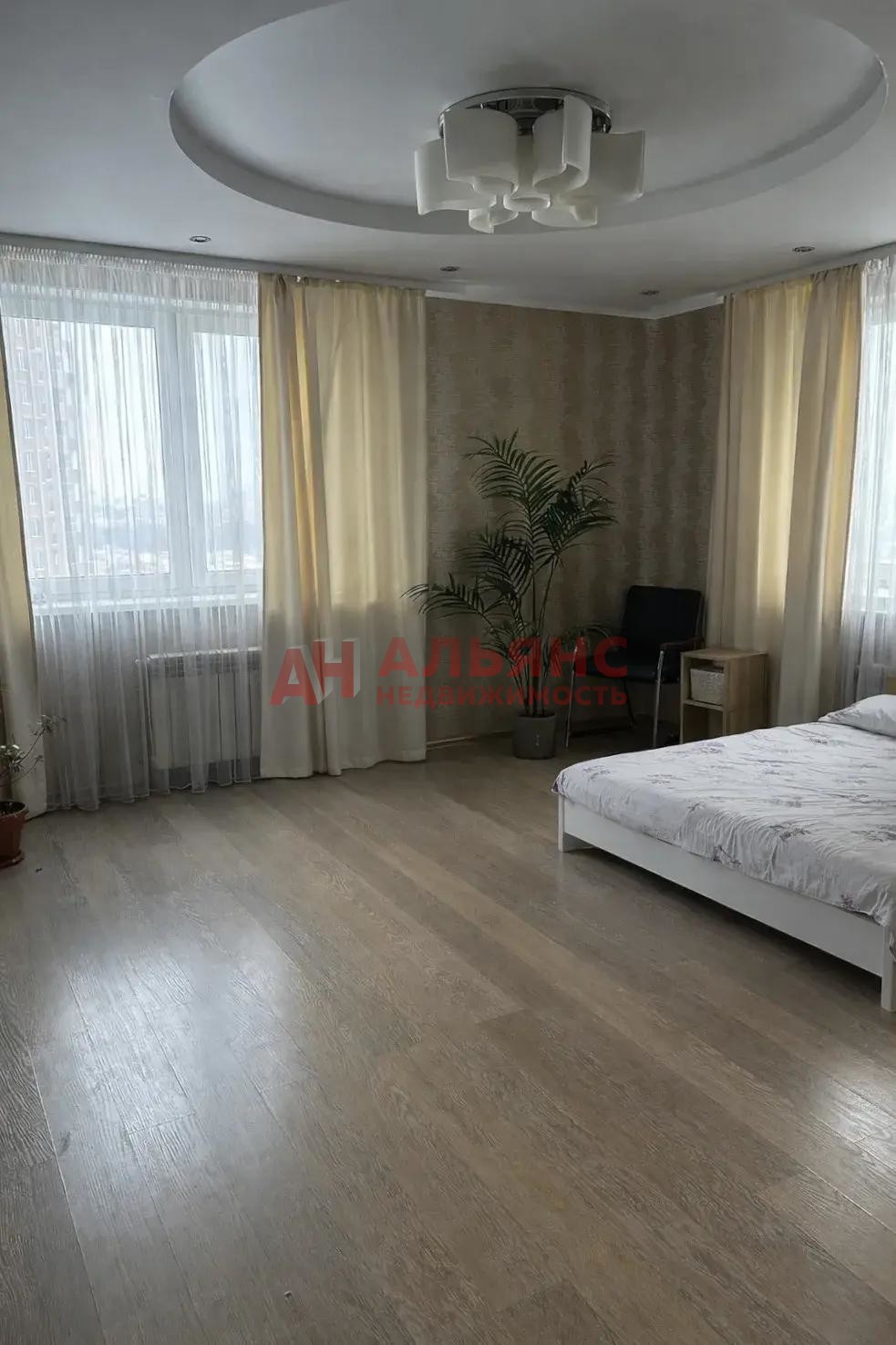 Просторная гостиная, большая кухня, уютная спальня, окна выходят на две стороны.