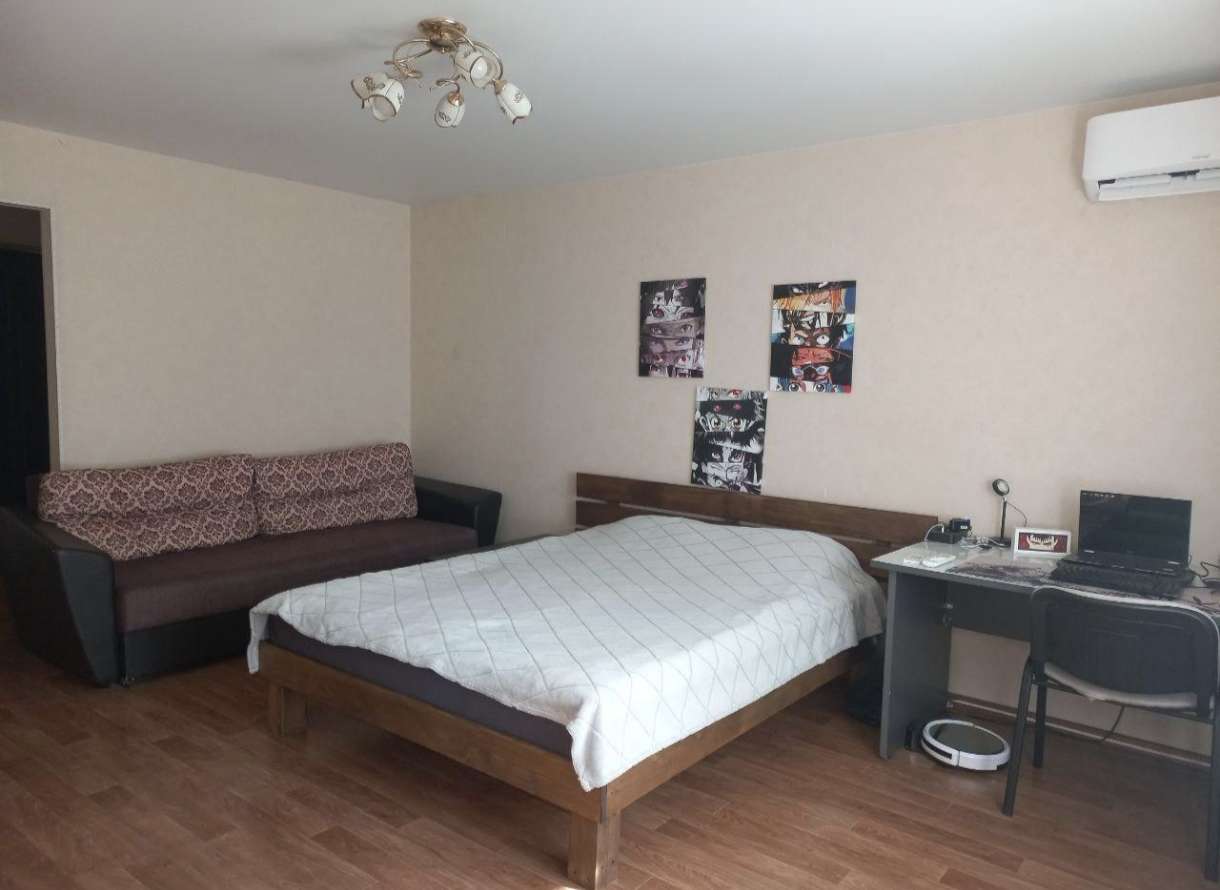Сдаётся уютная однокомнатная квартира на длительный срок .В квартире косметический ремонт, есть вся необходимая техника, полностью меблированная. В квартире: - Кухня: газовая плита, холодильник, микроволновка, кухонный гарнитур, обеденный стол, стулья - Комната и прихожая: кровать с ортопедическим матрасом, диван, письменный стол, стул, шкаф, новый кондиционер - Санузел (совмещенный): стиральная машина - Прочее: окна пластиковые, Wi-Fi - Балкон.
