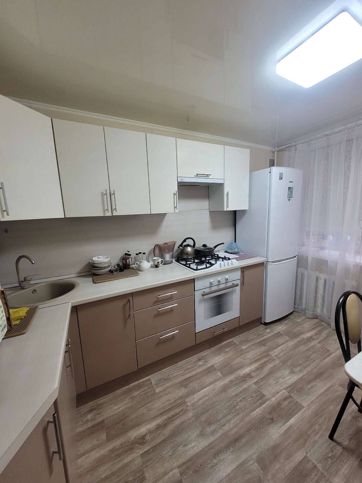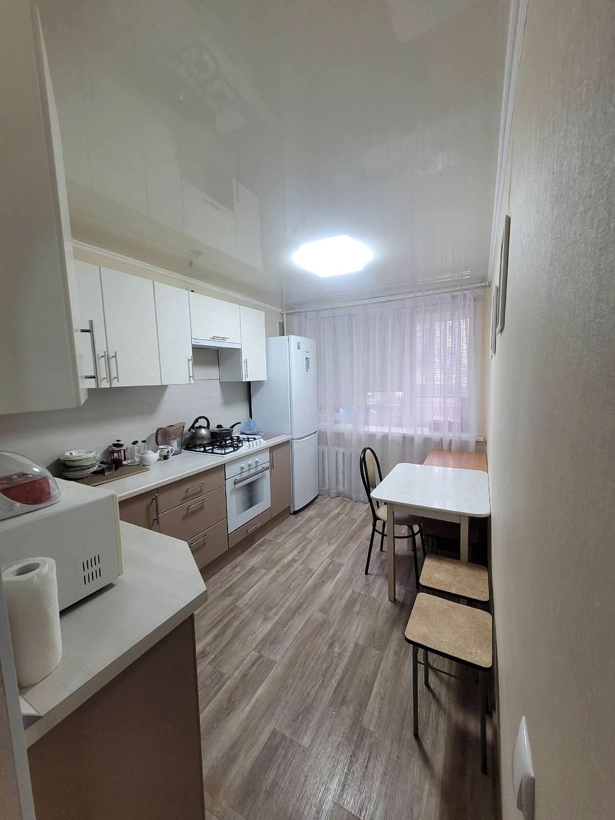 Сдаётся квартира на длительный срок.В квартире есть всё необходимое: стиральная машина, холодильник, микроволновка, варочная панель, духовка новая, маленький телевизор, диван, кровать, чистая новая мебель, сушилка для белья, проточный водонагреватель в случае отключения гор.воды.