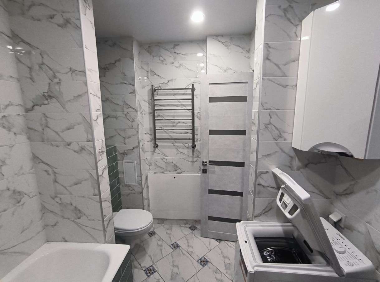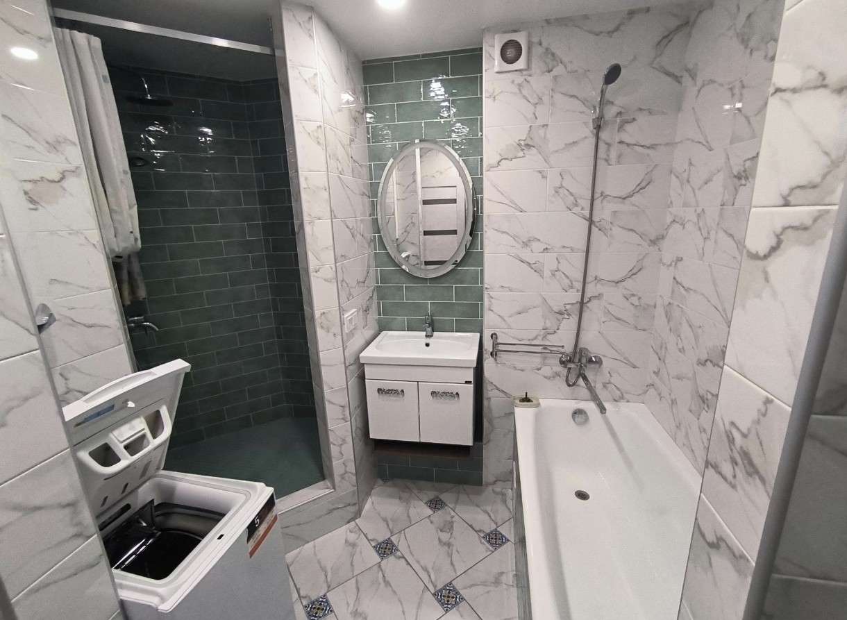 Сдается двухкомнатная квартира с новым дизайнерским ремонтом. В квартире изолированные комнаты, что обеспечивает комфорт и приватность. Большая кухня-гостинная с панорамным остеклением, качественной мебелью и техникой, включая холодильник и варочную панель. А так же две комнаты: основная в которую ведет широкий проход из кухни-гостинной и спальня с двухспальной кровалью и большим шкафом. Ванная комната выполнена в стильном дизайне, и за счет того, что она совмещена с СУ в ней поместились полноценная ванна, просторная встроенная душевая, раковина, стиральная машина. В доме есть пассажирский и грузовой лифты, а также подземная парковка и большая парковка вокруг дома. Квартира сдается для семейной пары с детьми или без, но без животных. Курение в квартире запрещено.