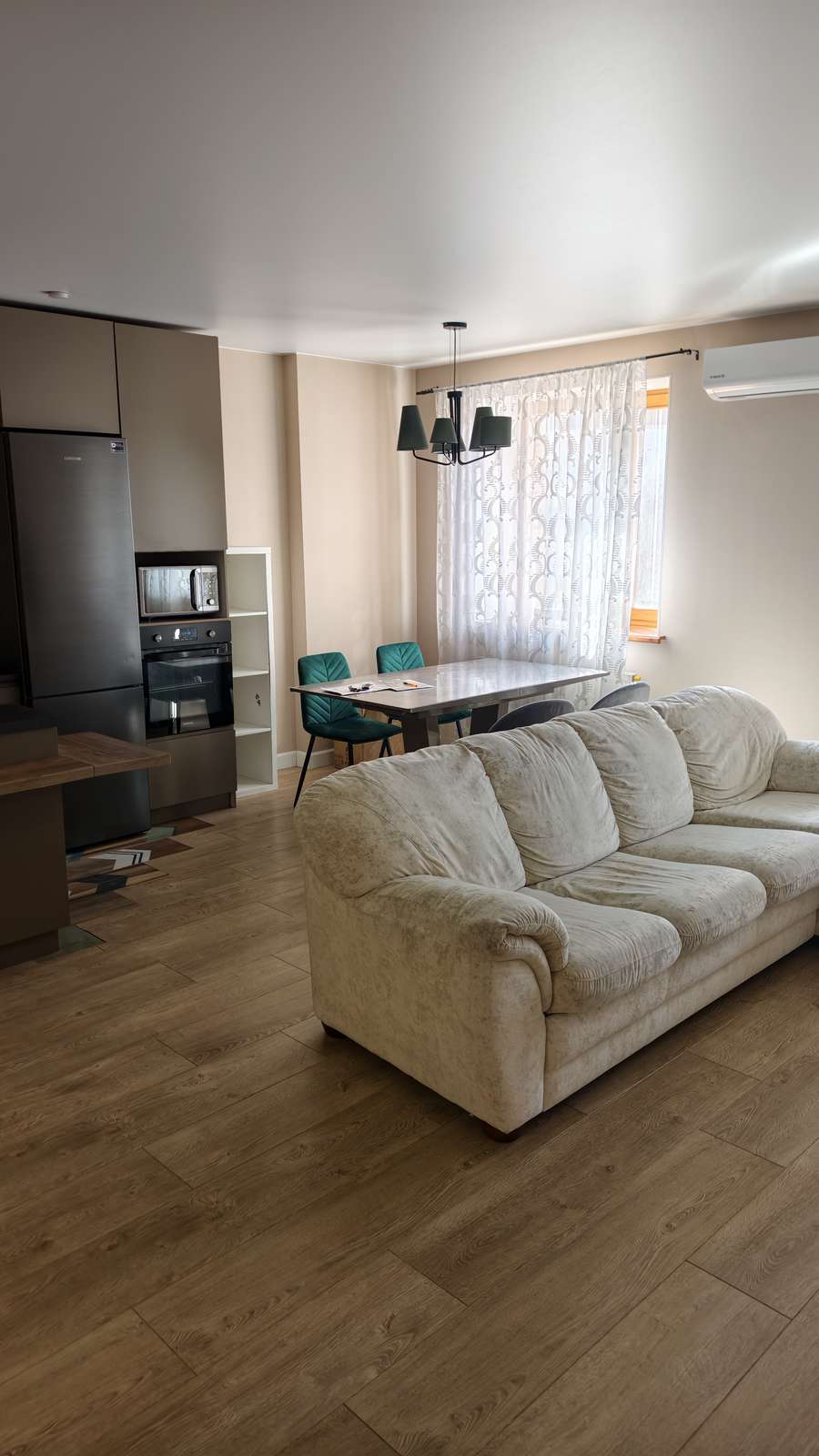 Сдаётся большая квартира с мебелью с техникой .В квартире 2 санузла , большая гардеробная , постирачная . Совмещенная гостиная кухня и огромная детская , спальня со своим санузлом . 2 большие остекленные лоджии .